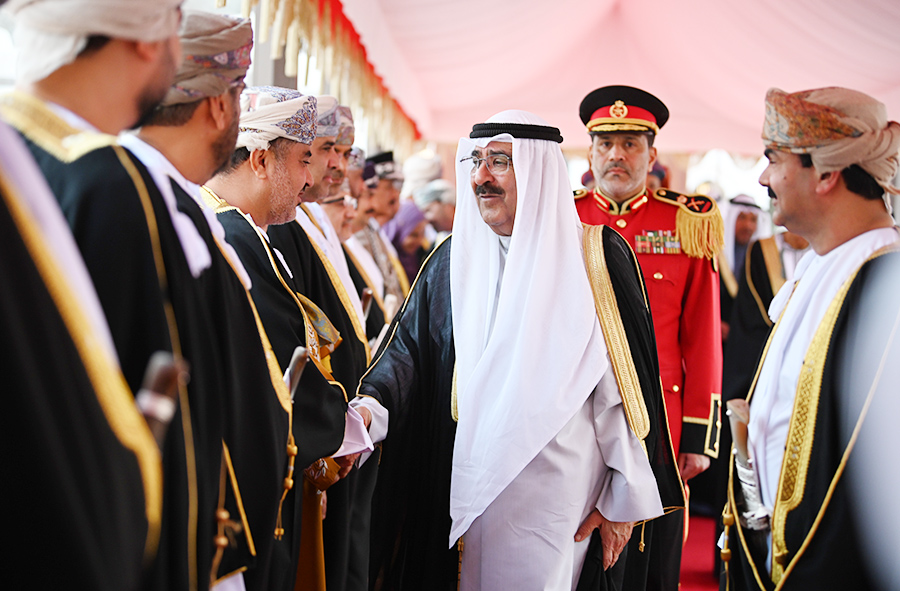 مسقط - 6 - 2 (كونا) -- أقيمت بقصر العلم عصر اليوم مراسم الاستقبال الرسمية لحضرة صاحب السمو أمير البلاد الشيخ مشعل الأحمد الجابر الصباح حفظه الله ورعاه ذلك بمناسبة زيارة دولة لسموه رعاه الله لسلطنة عمان الشقيقة.