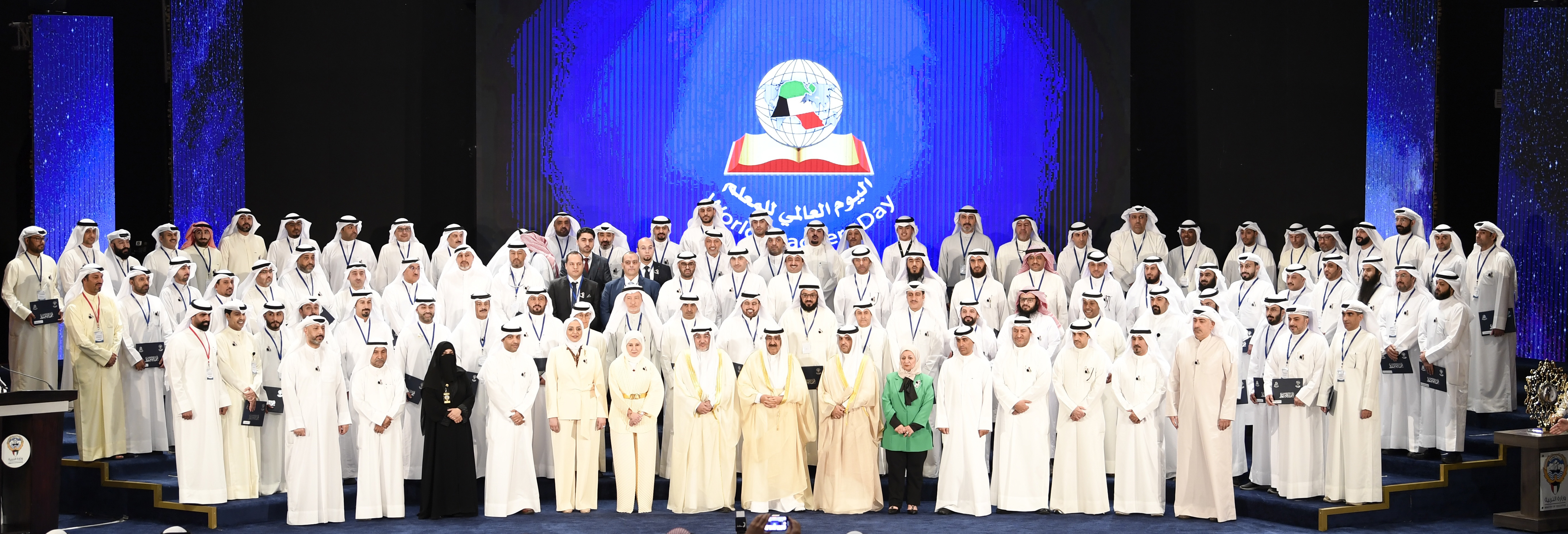 هذا وقد تفضل حضرة صاحب السمو أمير البلاد الشيخ مشعل الأحمد الجابر الصباح حفظه الله ورعاه بتكريم المحتفى بهم من المعلمين والمعلمات والمدارس المتميزة.