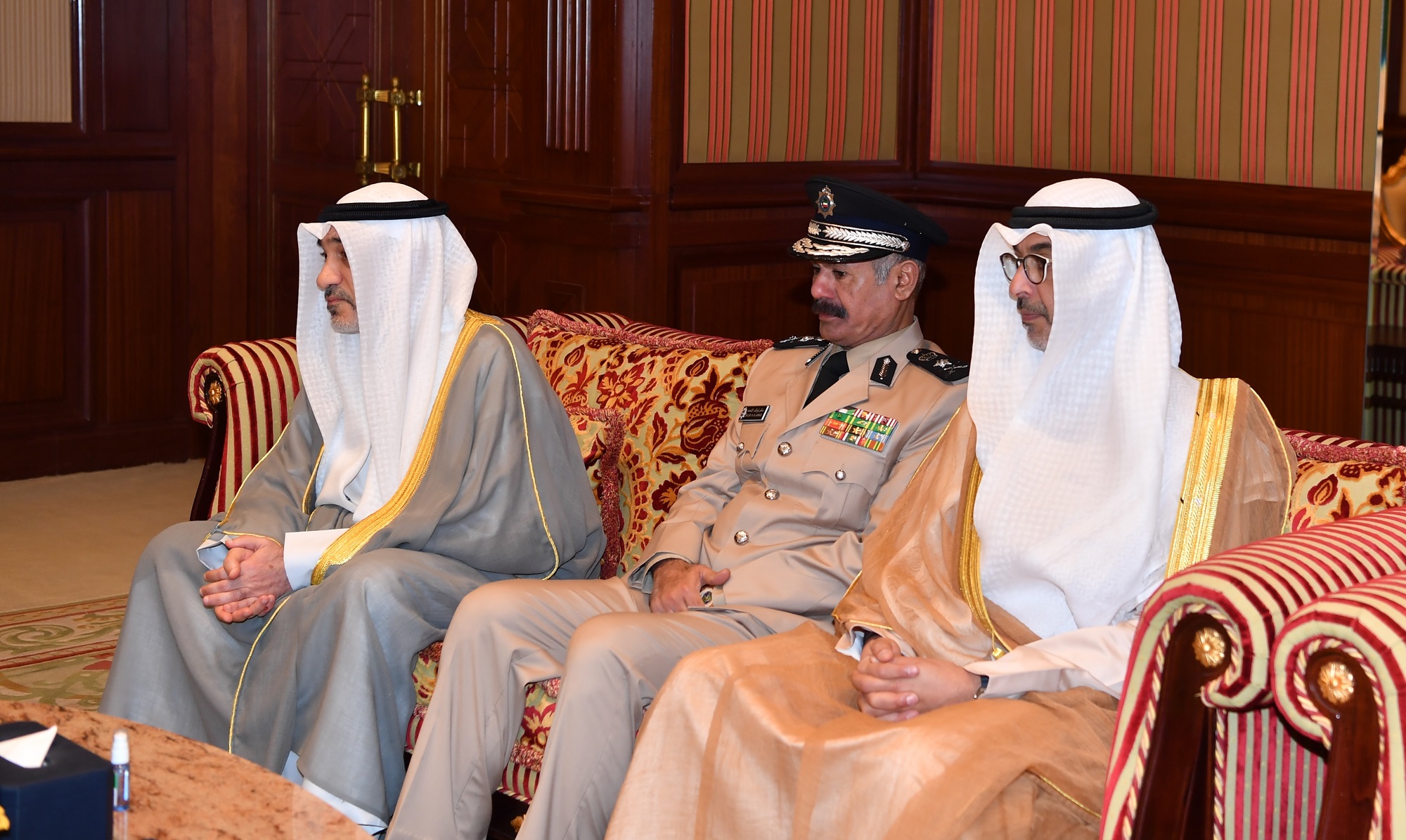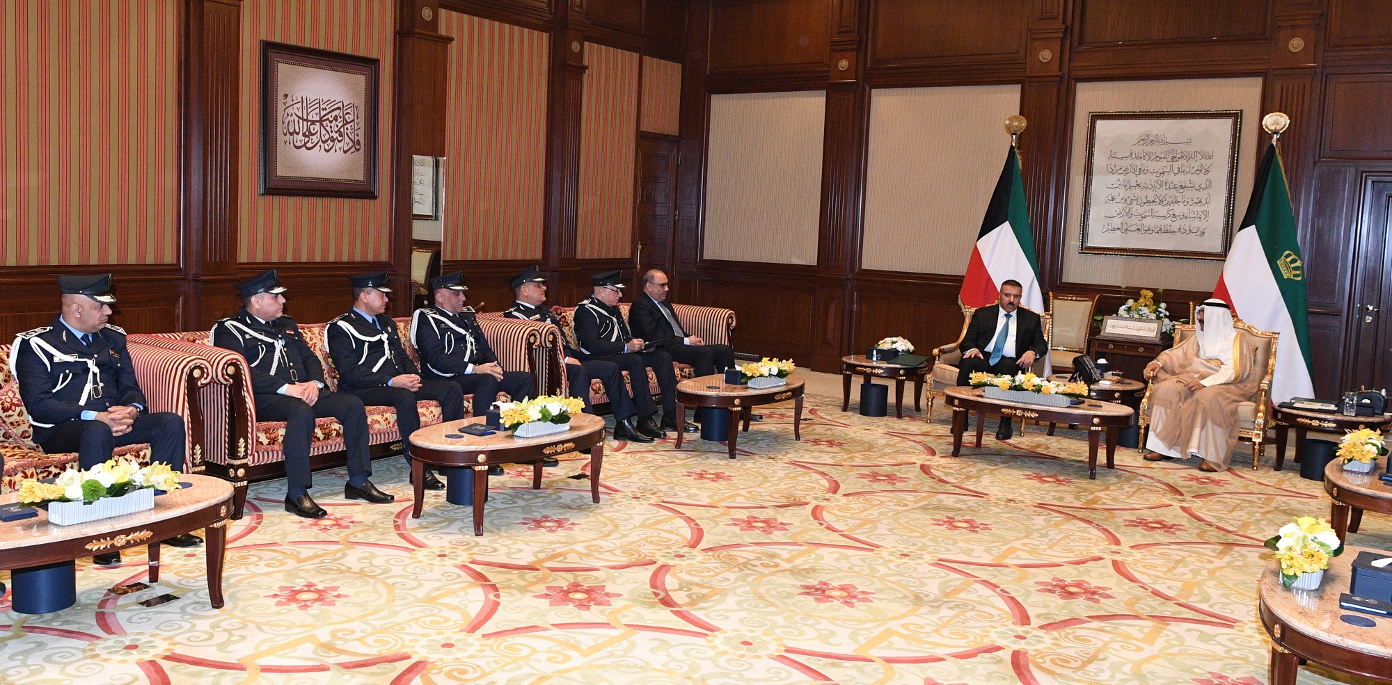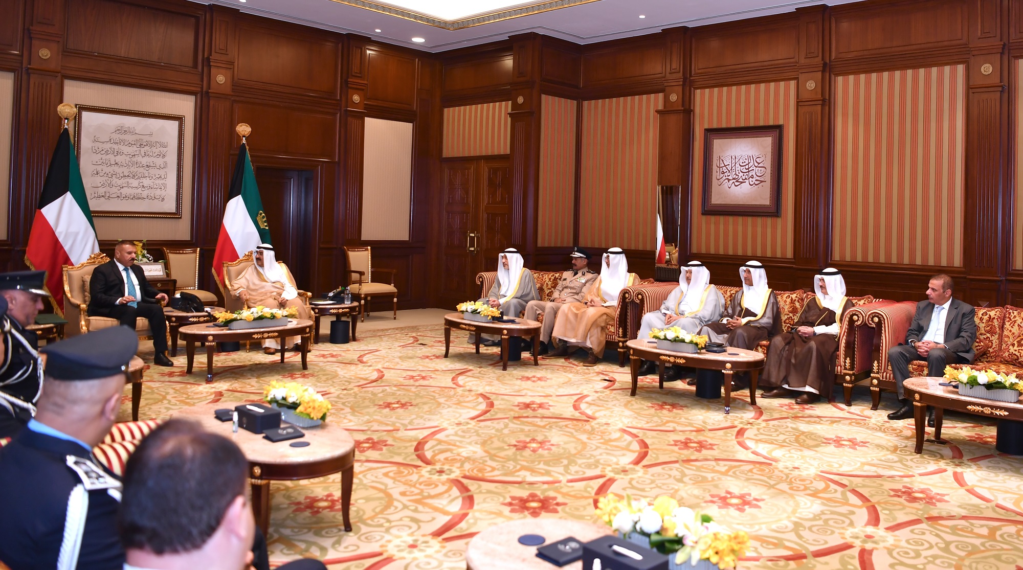واستقبل سموه حفظه الله بقصر بيان صباح اليوم معالي النائب الأول لرئيس مجلس الوزراء ووزير الدفاع ووزير الداخلية الشيخ فهد يوسف سعود الصباح ووزير الداخلية في جمهورية العراق الشقيق الفريق الركن عبد الأمير الشمري والوفد المرافق وذلك بمناسبة زيارته الرسمية للبلاد.