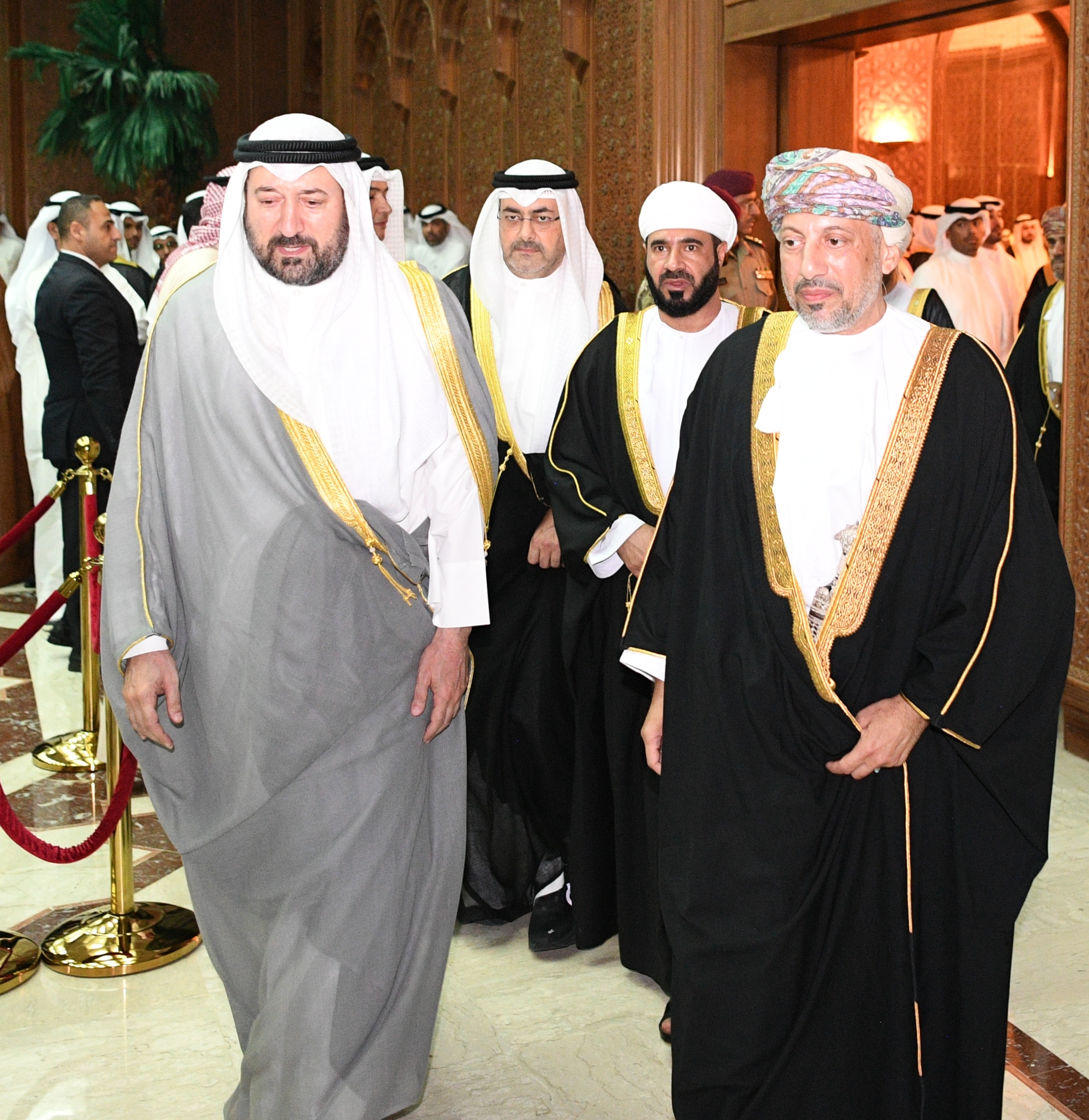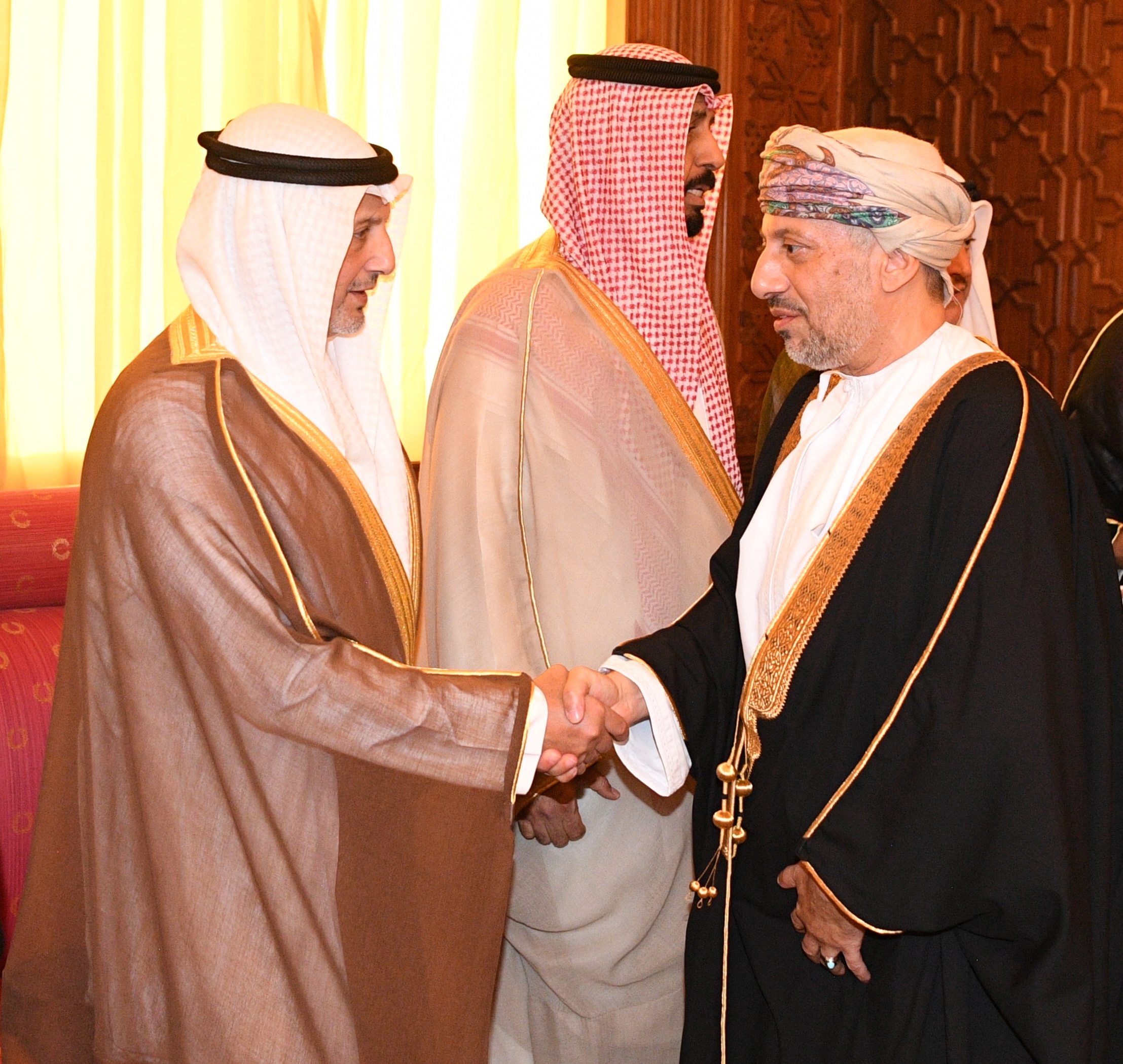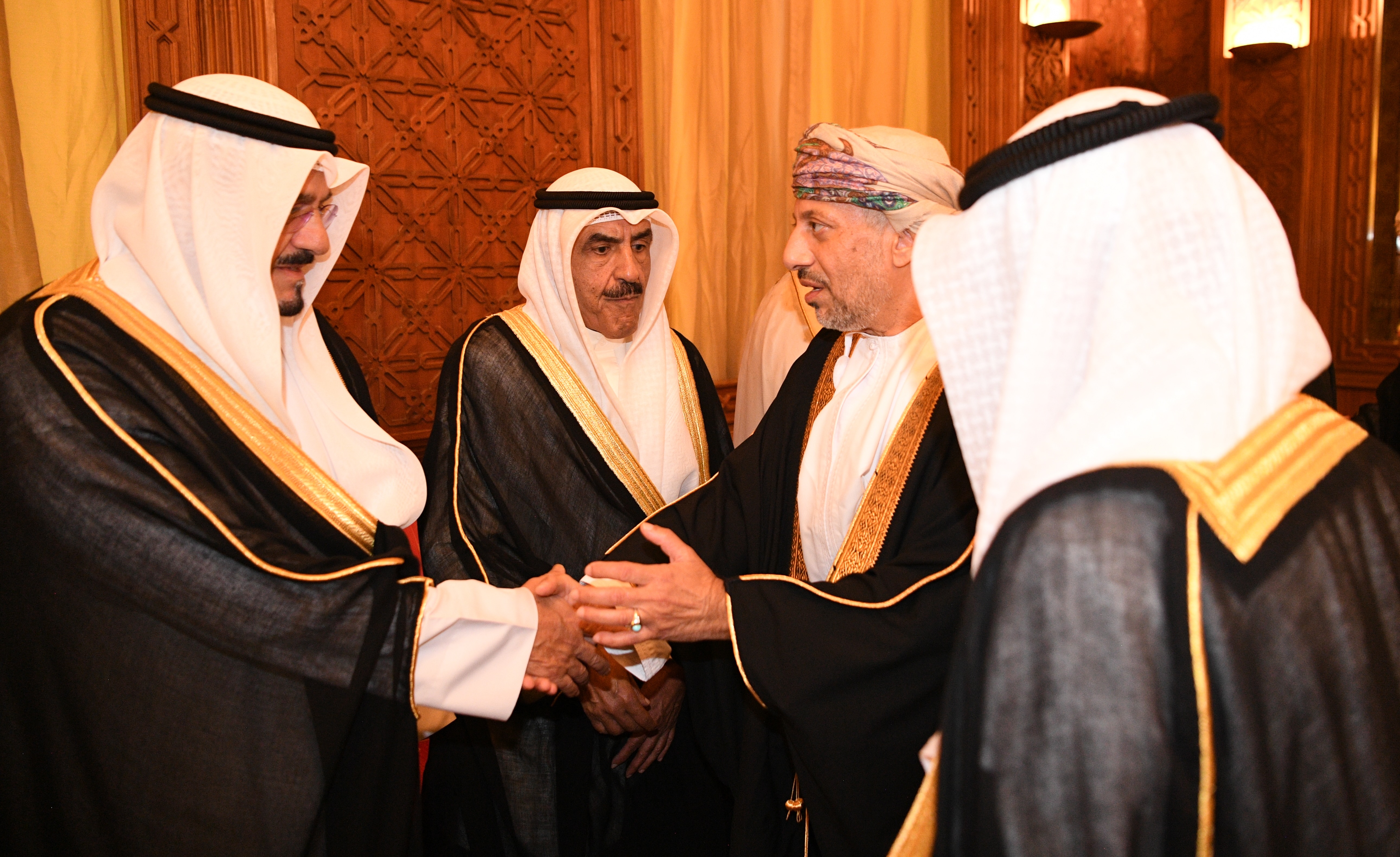 الكويت - 14 - 8 (كونا) -- استقبل سمو ولي العهد الشيخ صباح خالد الحمد الصباح حفظه الله وأصحاب السمو الشيوخ وسمو الشيخ أحمد عبدالله الأحمد الصباح رئيس مجلس الوزراء وأسرة آل الصباح الكرام عصر اليوم ممثل حضرة صاحب الجلالة السلطان هيثم بن طارق المعظم سلطان عمان الشقيقة صاحب السمو السيد حارب بن ثويني بن شهاب آل سعيد والوفد المرافق حيث قاموا بتقديم واجب العزاء بوفاة المغفور له بإذن الله تعالى سمو الشيخ سالم العلي السالم المبارك الصباح رئيس الحرس الوطني. (النهاية)