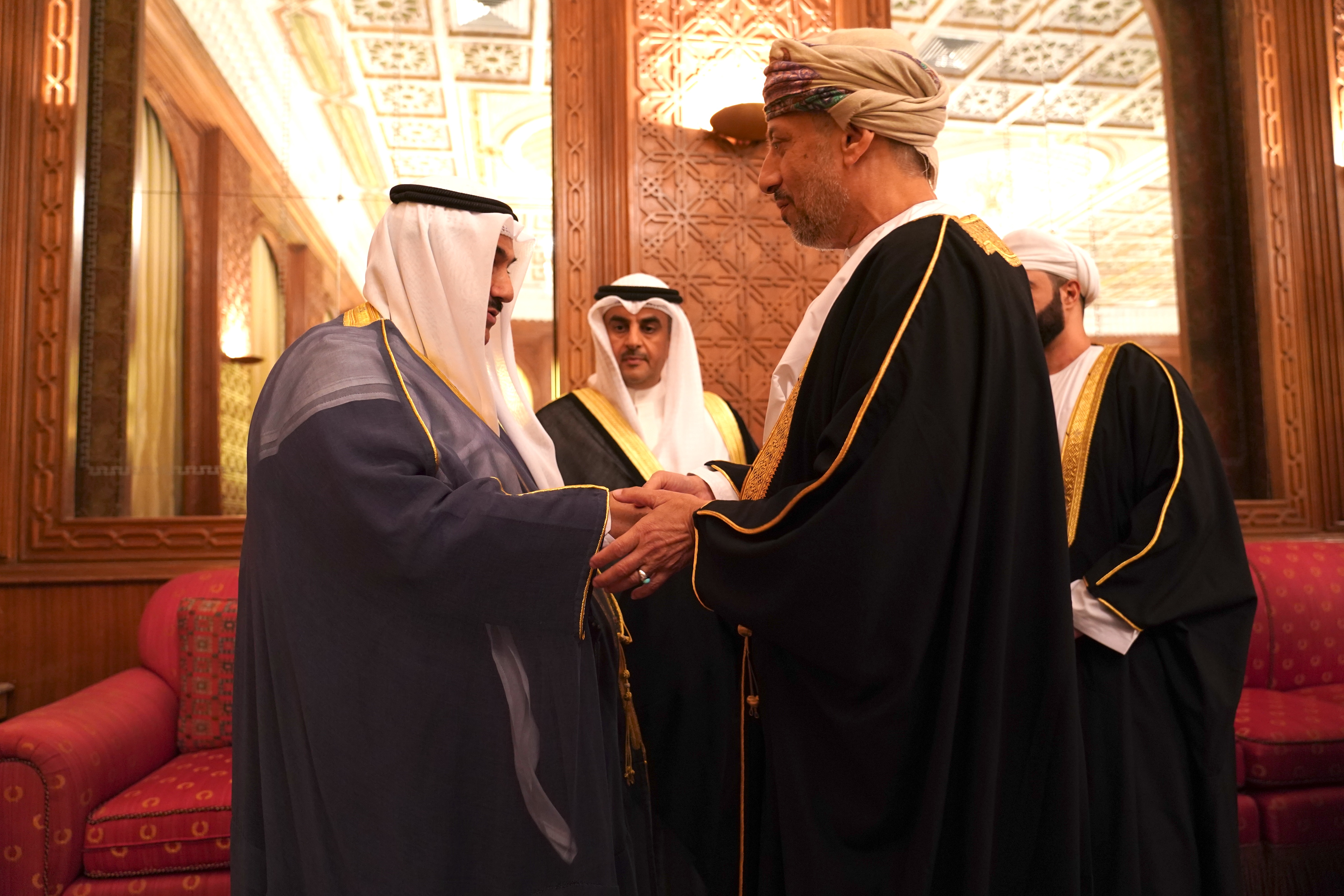سمو ولي العهد الشيخ صباح خالد الحمد الصباح يتلقى العزاء من ممثل سلطان عمان بوفاة سمو الشيخ سالم العلي الصباح