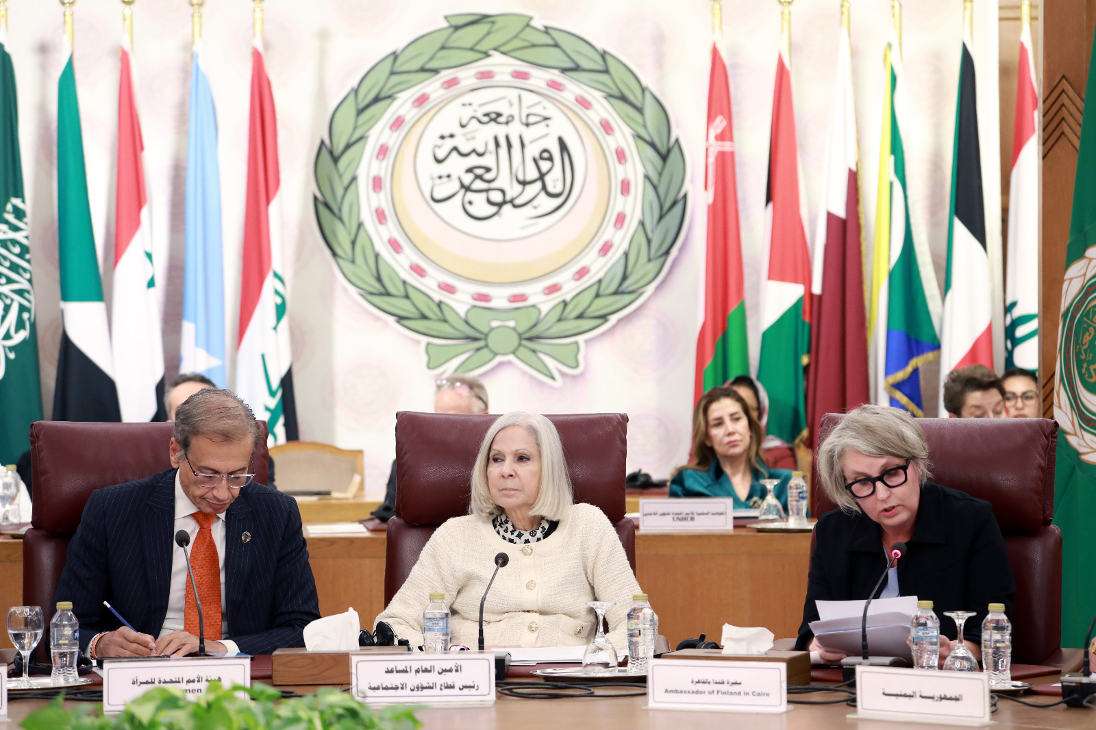 المشاركون في فعاليات المؤتمر الوزاري رفيع المستوى حول المرأة والسلم والأمن والذي يعقد بمقر الأمانة العامة لجامعة الدول العربية