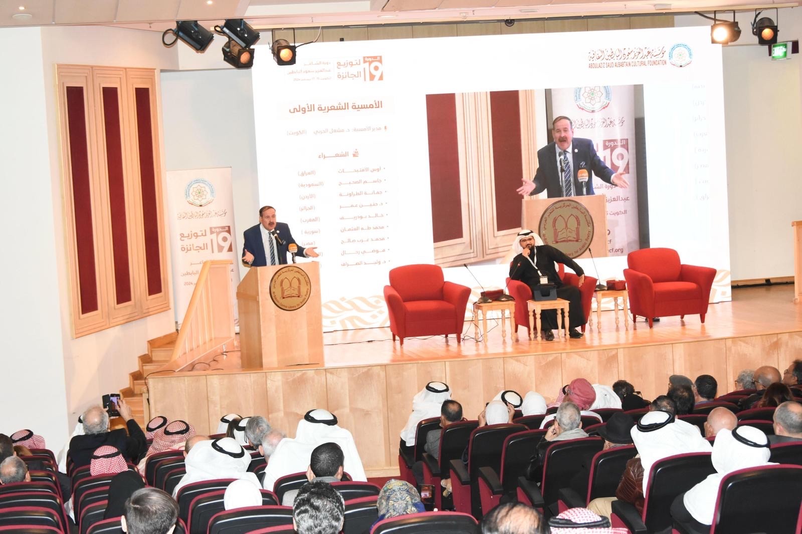 يذكر أن فعاليات الدورة الـ19 لمؤسسة عبدالعزيز سعود البابطين الثقافية انطلقت صباح اليوم الأحد تحت رعاية حضرة صاحب السمو أمير البلاد الشيخ مشعل الأحمد الجابر الصباح حفظه الله ورعاه في حفل احتضنه مركز الشيخ جابر الأحمد الثقافي وتم تكريم المبدعين من الشعراء الفائزين بجوائز المؤسسة. (النهاية)