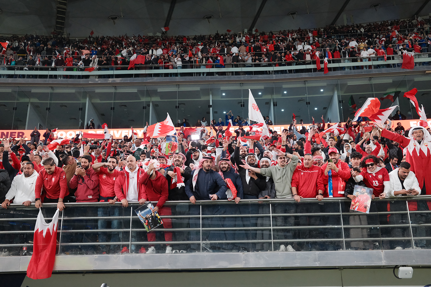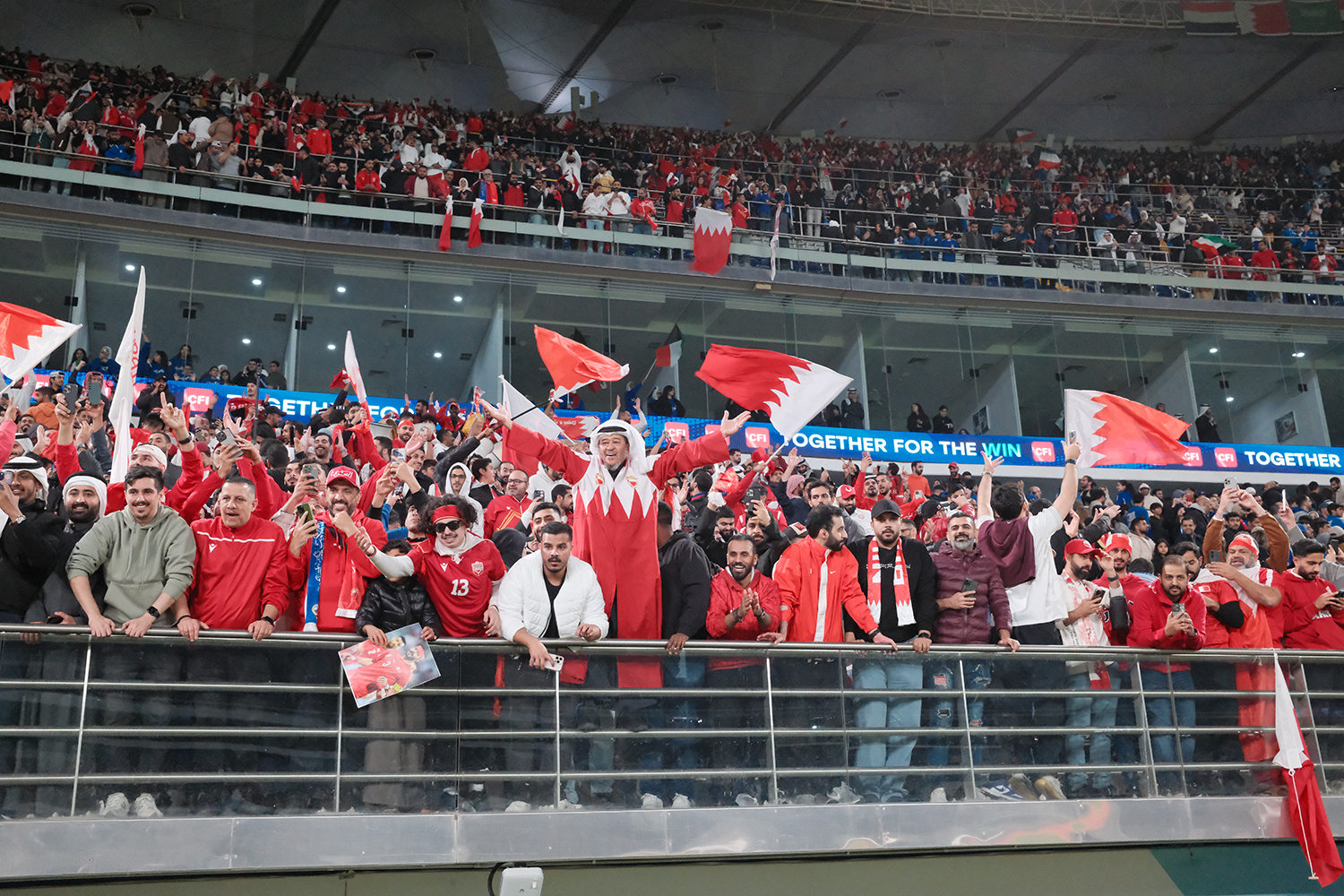 واجتاحت أجواء من الفرح والفخر مدرجات جماهير البحرين مساء اليوم الثلاثاء إذ ارتفعت أعلام البحرين عاليا وسط أصوات الهتافات المفعمة بالحماس للنهائي المقرر يوم السبت المقبل في مواجهة منتخب عمان.