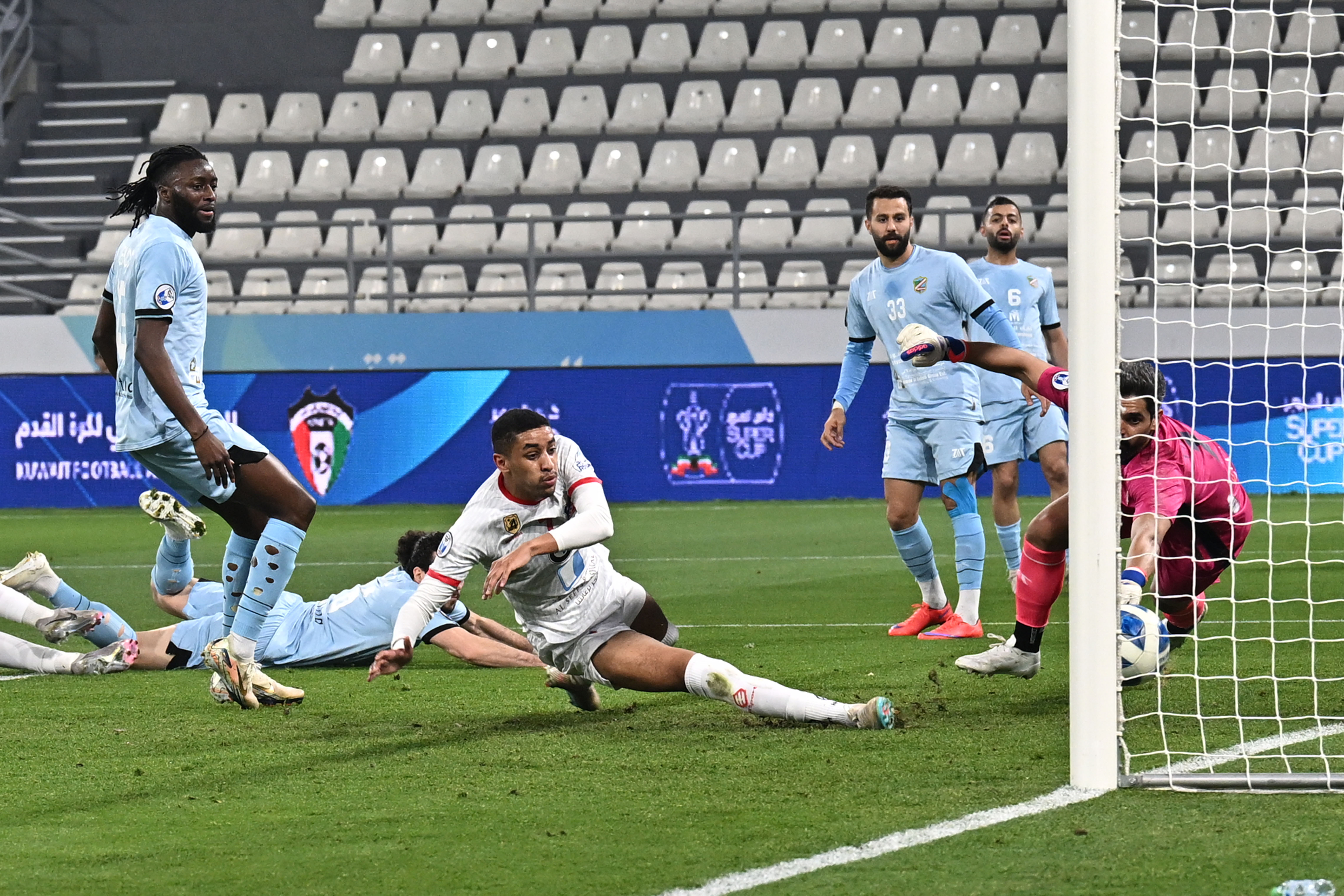 محاولة استخلاص الكرة من لاعب نادي الكويت