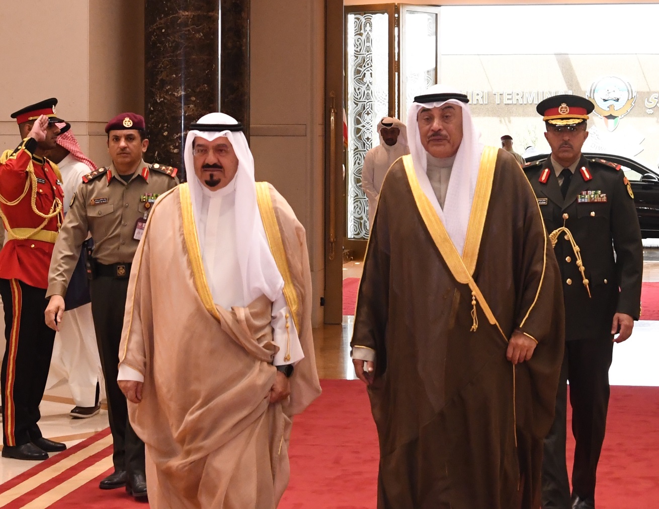 وكان في وداع سموه حفظه الله على أرض المطار سمو الشيخ أحمد عبدالله الأحمد الصباح رئيس مجلس الوزراء ومعالي رئيس الحرس الوطني الشيخ مبارك حمود الجابر الصباح ومعالي النائب الأول لرئيس مجلس الوزراء ووزير الداخلية الشيخ فهد يوسف سعود الصباح ومعالي وزير شؤون الديوان الأميري الشيخ محمد عبدالله المبارك الصباح ومعالي نائب رئيس مجلس الوزراء ووزير الدولة لشؤون مجلس الوزراء شريدة عبدالله المعوشرجي ومعالي وزير الدفاع الشيخ عبدالله علي عبدالله السالم الصباح.