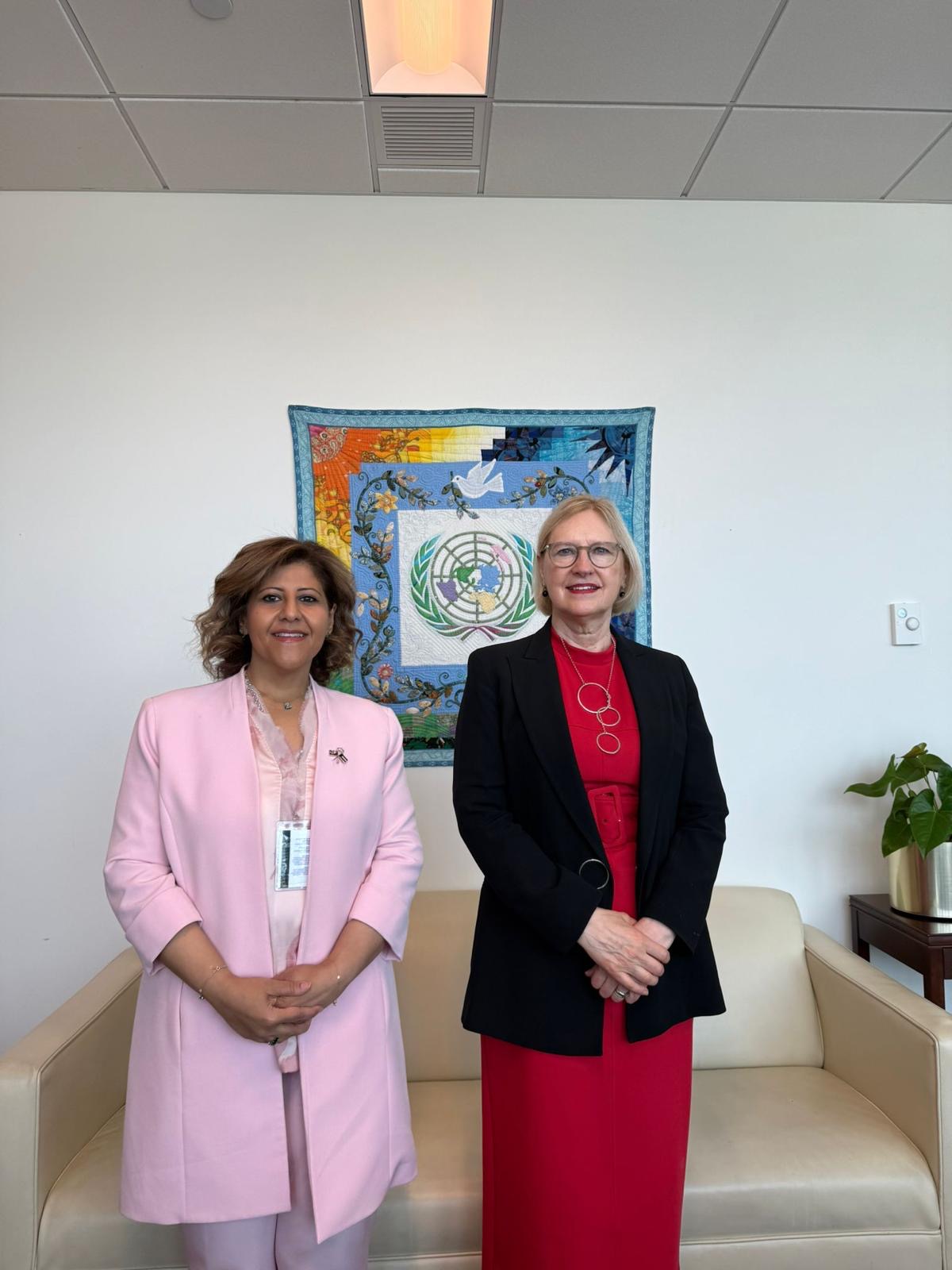 مساعد وزير الخارجية لشؤون حقوق الإنسان السفيرة الشيخة جواهر إبراهيم الدعيج الصباح مع مساعدة الأمين العام للأمم المتحدة لدعم بناء السلام إليزابيث سبيهار