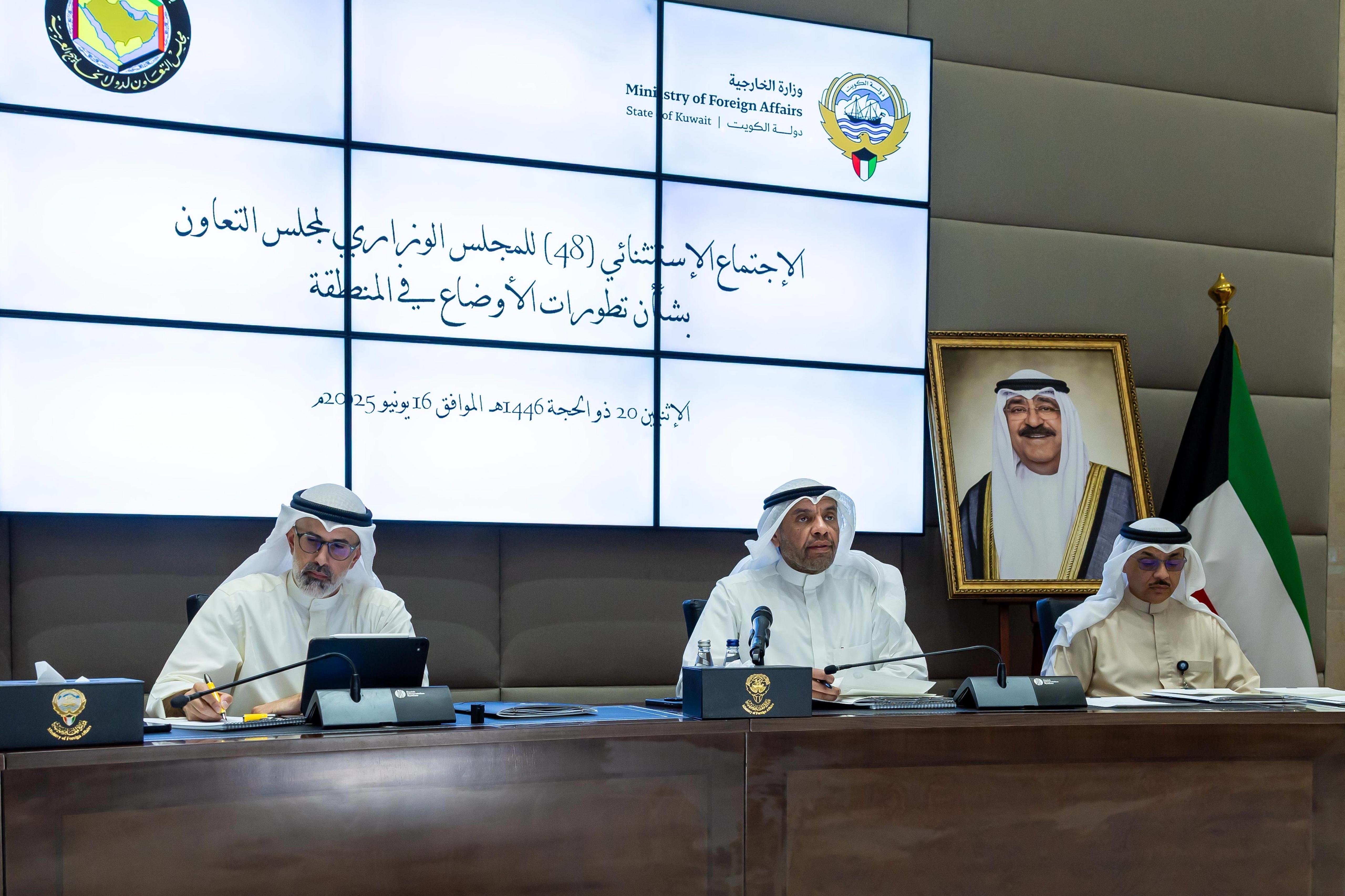 الكويت - 16 - 6 (كونا) -- ترأس وزير الخارجية رئيس الدورة الحالية للمجلس الوزاري لمجلس التعاون لدول الخليج العربية عبدالله اليحيا اليوم الإثنين الاجتماع الاستثنائي الـ48 لوزراء خارجية دول مجلس التعاون الخليجي.
