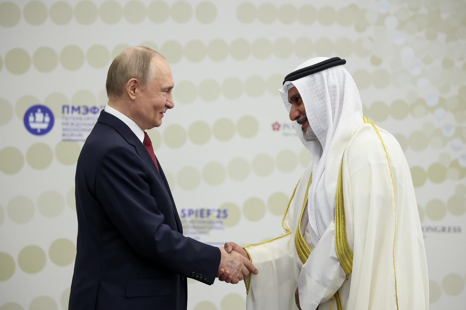 وشكر الرئيس بوتين الغيص على حضوره المنتدى الدولي الذي ينعقد في دورته الحالية وسط تحديات متزايدة يشهدها الاقتصاد العالمي مشيدا بالدور الذي يلعبه المنتدى في تعزيز الحوار حول الأمن الاقتصادي والطاقة العالمية.