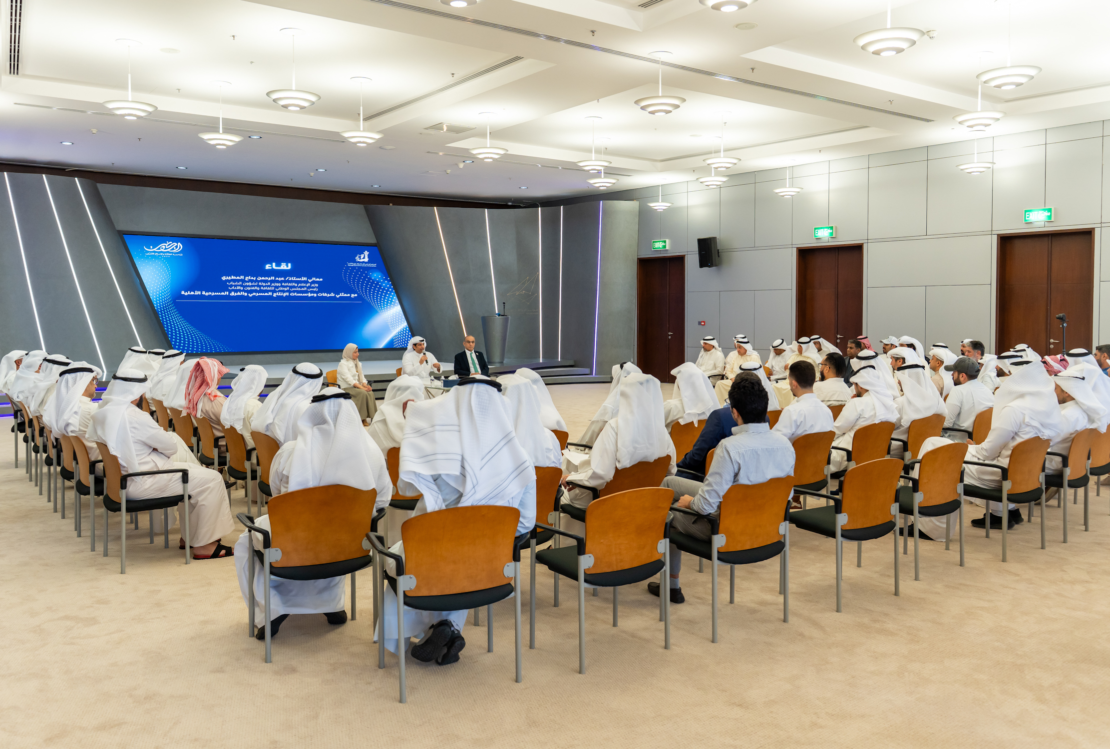 واستمع خلال اللقاء إلى مداخلات الحضور وتحدياتهم وذلك بحضور أمين عام المجلس الوطني للثقافة والفنون والآداب الدكتور محمد الجسار والأمين العام المساعد لقطاع الفنون بالإنابة عائشة المحمود. (النهاية)