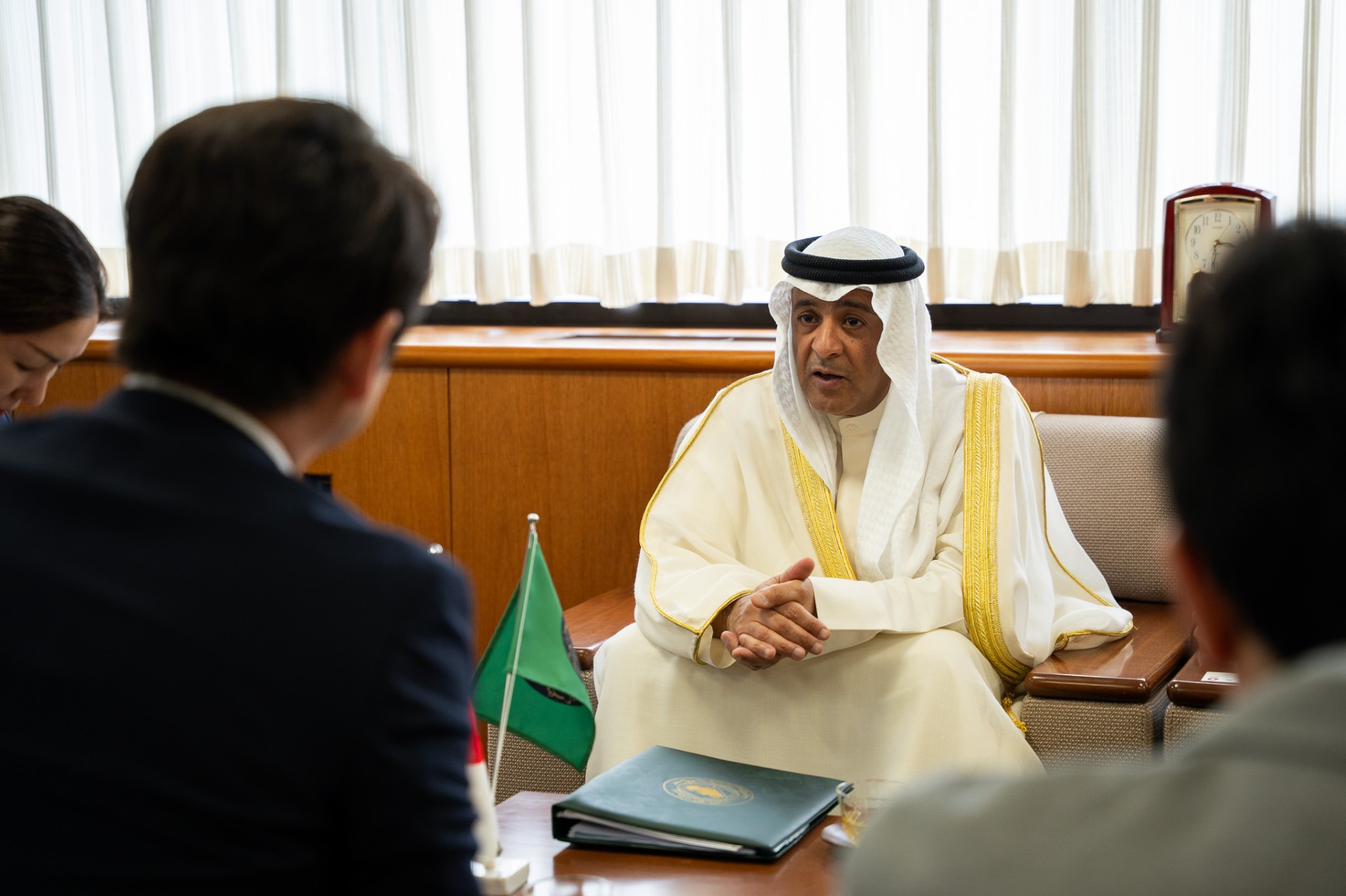 الأمين العام لمجلس التعاون لدول الخليج العربية جاسم البديوي مع نائب وزير الاقتصاد والتجارة والصناعة في اليابان كاتو اكيوشي