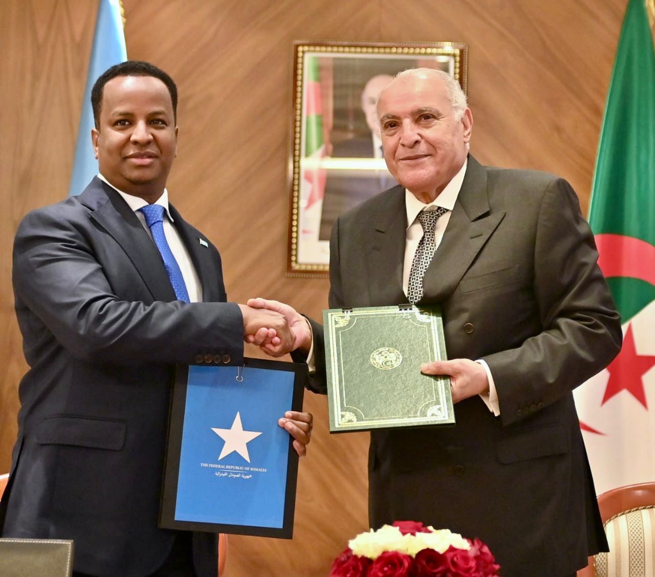وزير الخارجية الجزائري ونظيره الصومالي خلال توقيع الاتفاقية