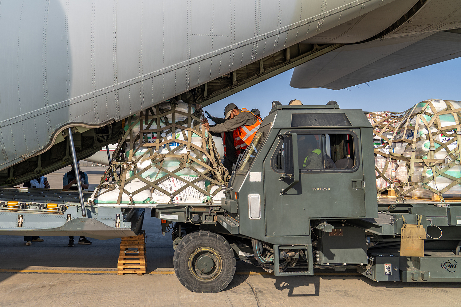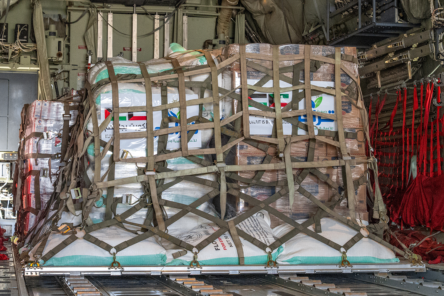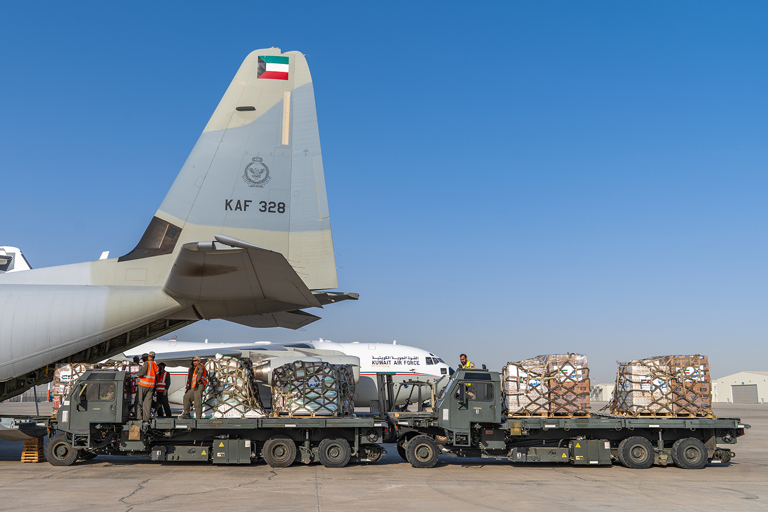 الكويت - 14 - 8 (كونا) -- أقلعت صباح اليوم الخميس من قاعدة عبد الله المبارك الجوية الطائرة الإغاثية الثالثة ضمن الجسر الجوي الكويتي الثاني متجهة إلى مطار ماركا العسكري في الأردن محملة بعشرة أطنان من المواد الغذائية الأساسية الموجهة بشكل عاجل للأشقاء في قطاع غزة.