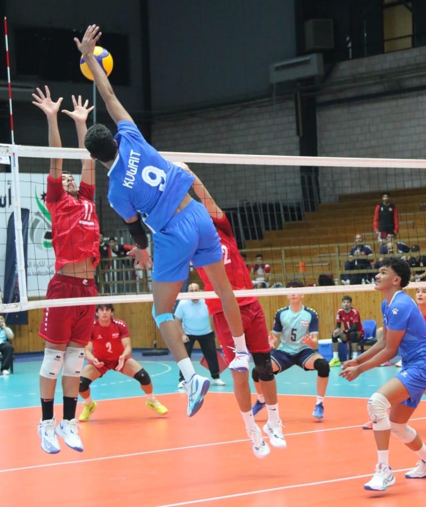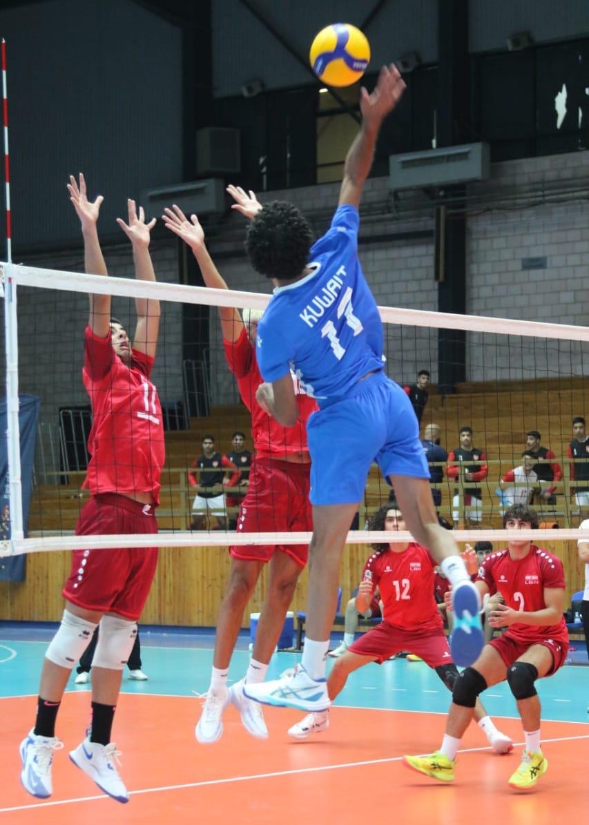لاعبي منتخب الكويت للناشئين لكرة الطائرة خلال تصديهم لهجمات المنتخب اللبناني