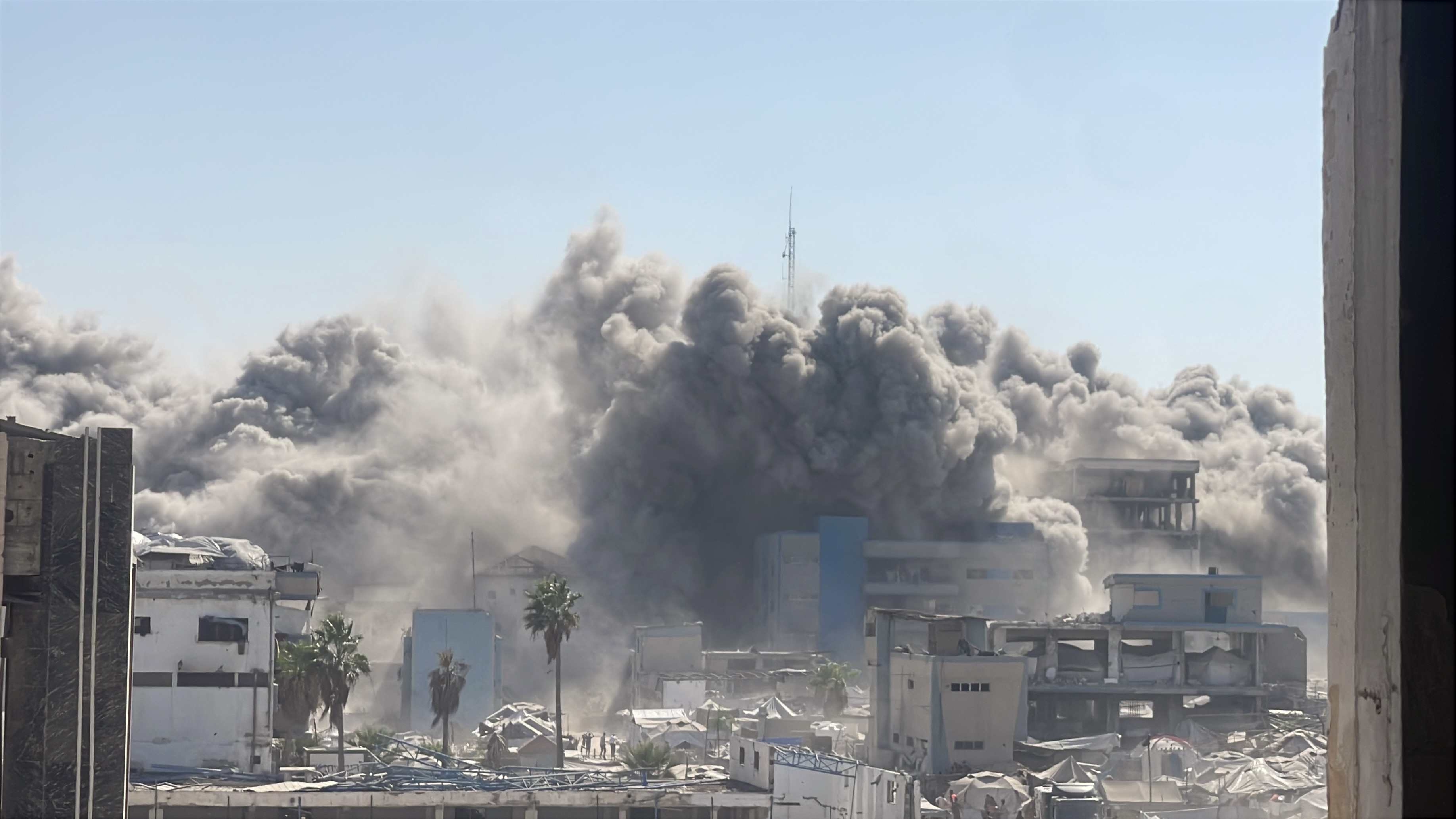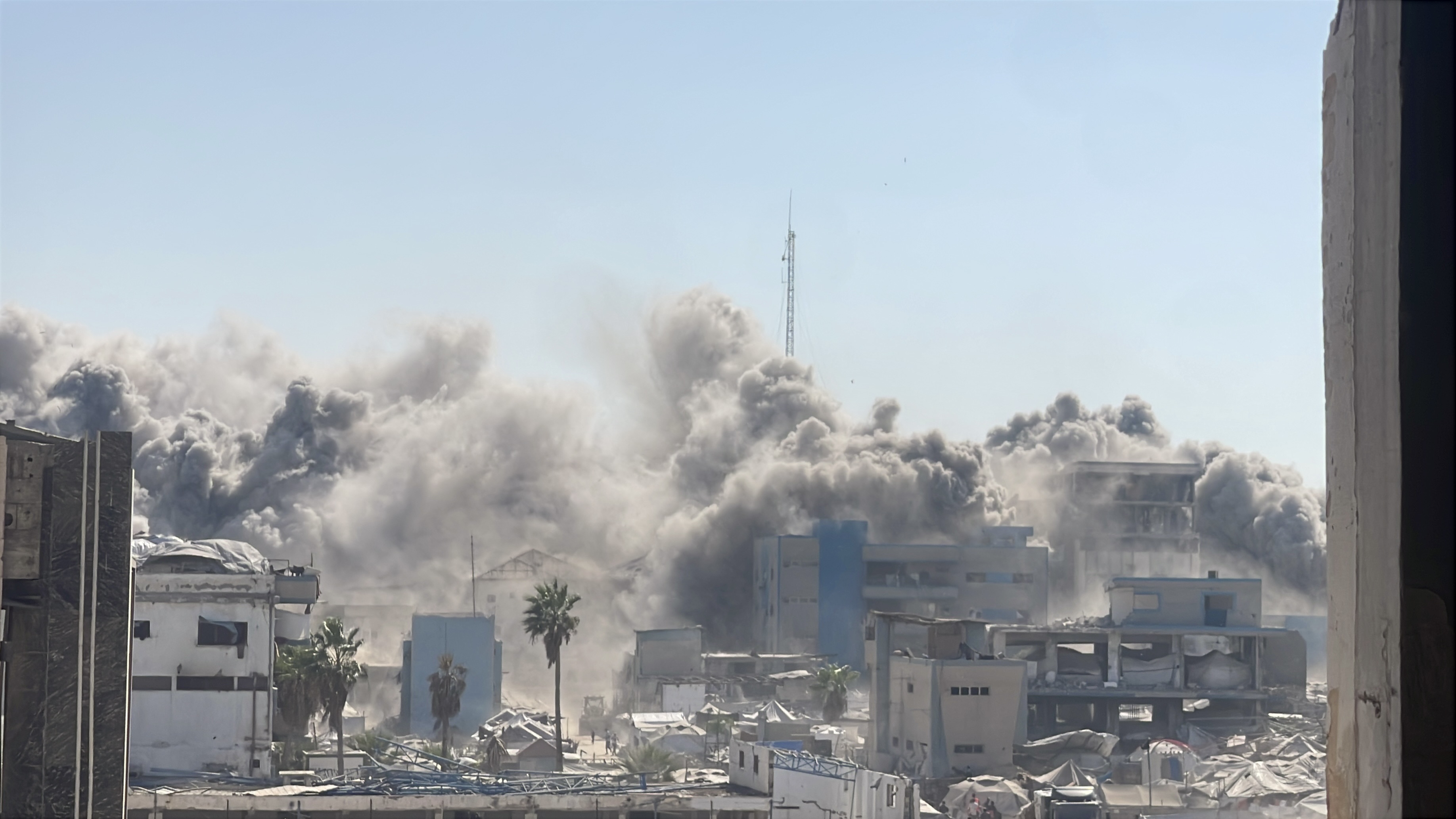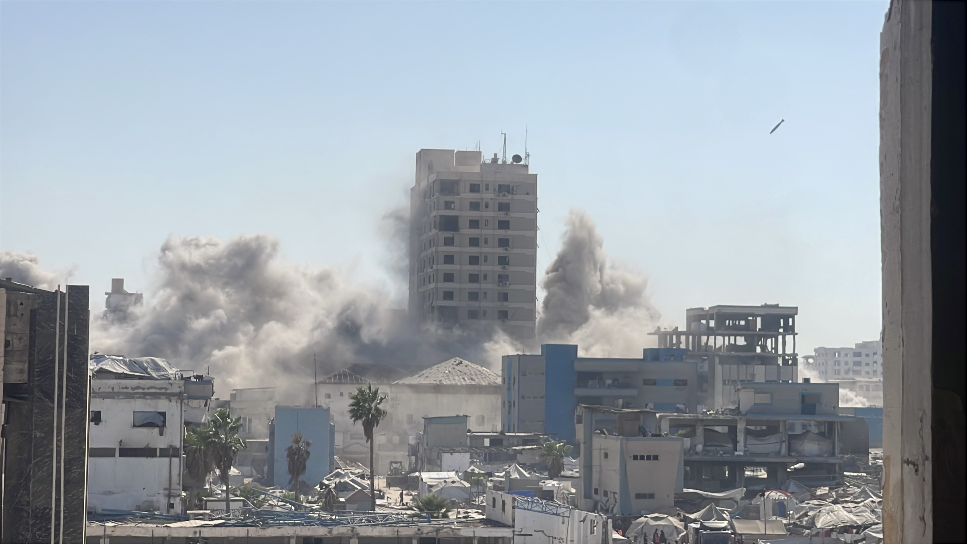 غزة – 8 – 9 – (كونا) –- قصفت طائرات الاحتلال الإسرائيلي الحربية اليوم الاثنين برج (الرؤيا) السكني في مدينة غزة ما أدى إلى تدميره بالكامل وتدمير العديد من مخيمات النزوح المجاورة.