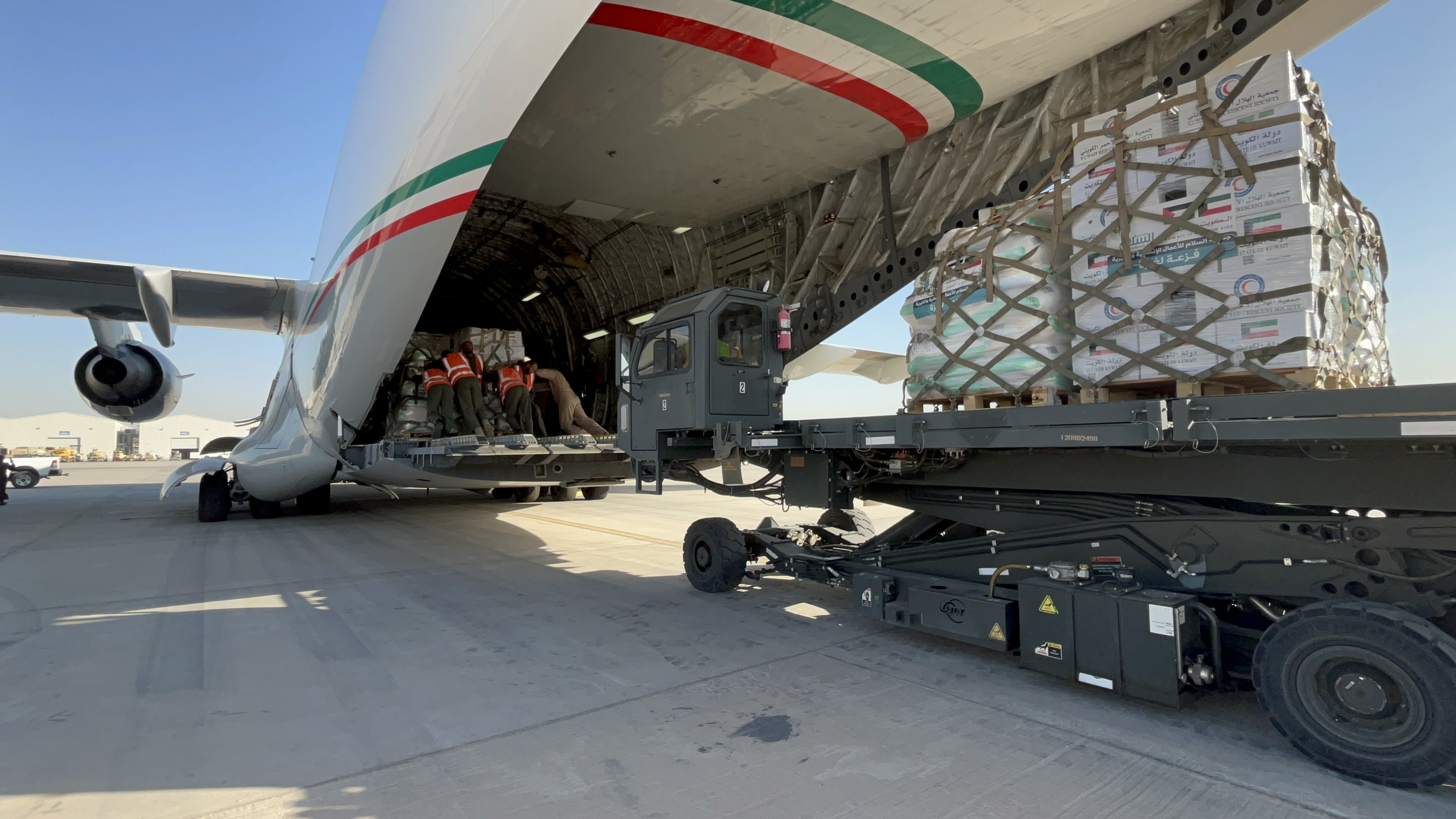 ممثلو الجهات الرسمية المشاركة بتجهيز الطائرة الإغاثية التاسعة ضمن الجسر الجوي الثاني