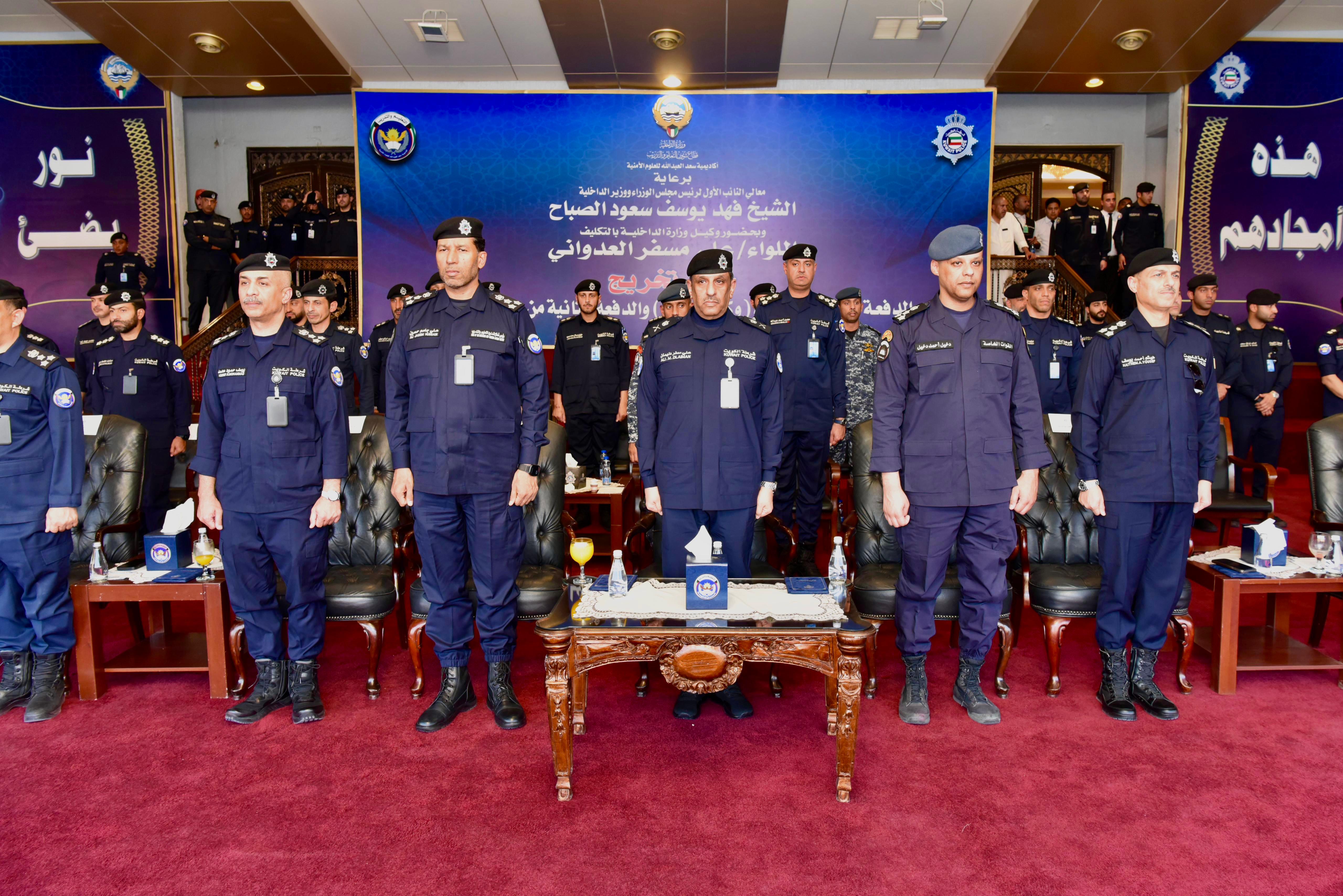 ووفق البيان نقل اللواء العدواني للخريجين تهاني وتحيات النائب الأول لرئيس مجلس الوزراء ووزير الداخلية الشيخ فهد يوسف سعود الصباح مشيدا بجهودهم وانضباطهم طوال فترة التدريب ومتمنيا لهم التوفيق والسداد في مسيرتهم العملية وأن يكونوا قدوة في أداء الواجب وخدمة الوطن بعزيمة وإخلاص.