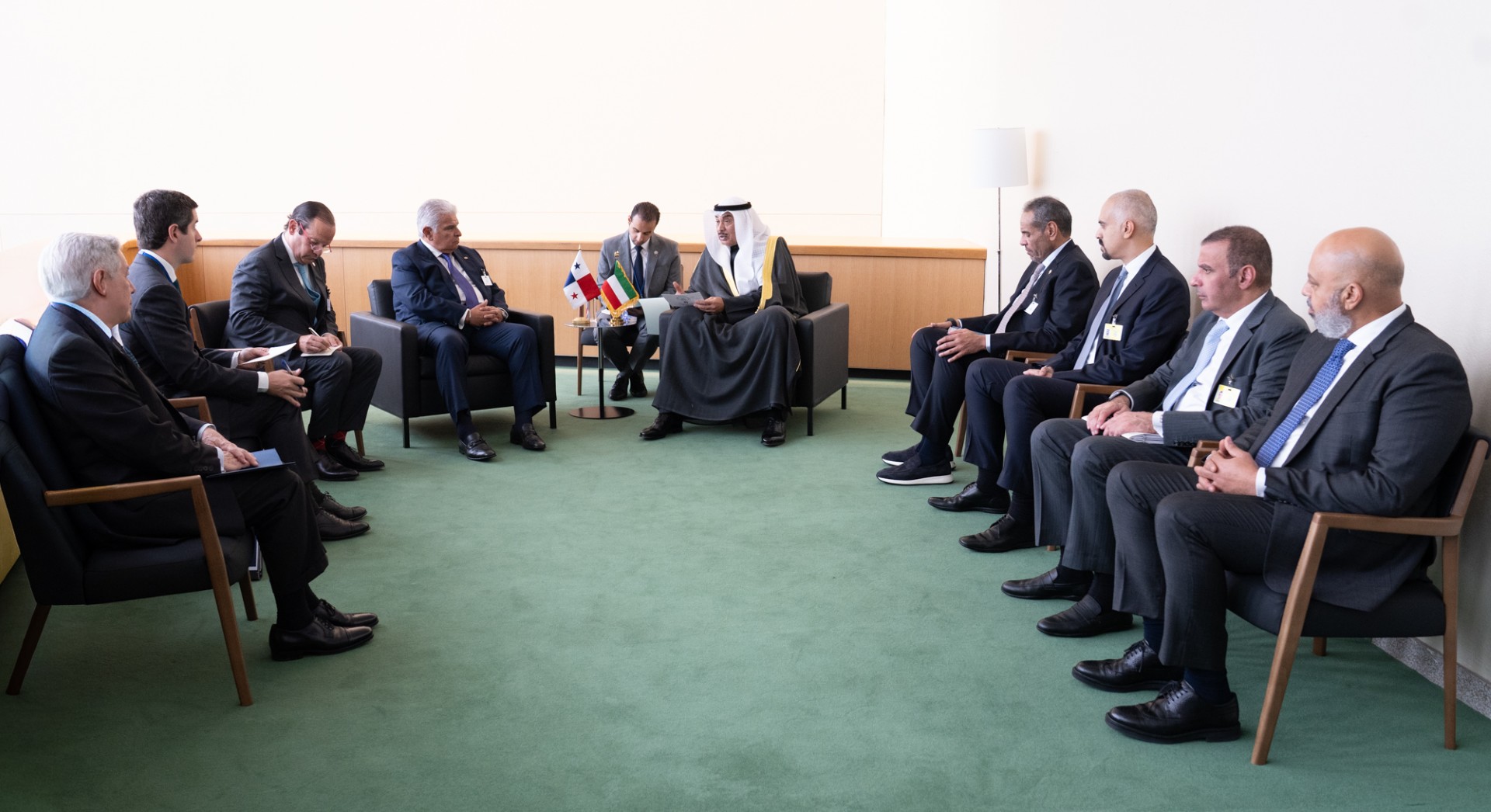 نيويورك - 22 - 9 (كونا) -- التقى ممثل حضرة صاحب السمو أمير البلاد الشيخ مشعل الأحمد الجابر الصباح حفظه الله ورعاه سمو ولي العهد الشيخ صباح خالد الحمد الصباح حفظه الله اليوم فخامة الرئيس خوسيه راؤول مولينو رئيس جمهورية بنما الصديقة وذلك على هامش اجتماعات الدورة 80 للجمعية العامة للأمم المتحدة في مقر منظمة الأمم المتحدة بمدينة نيويورك في الولايات المتحدة الأمريكية.