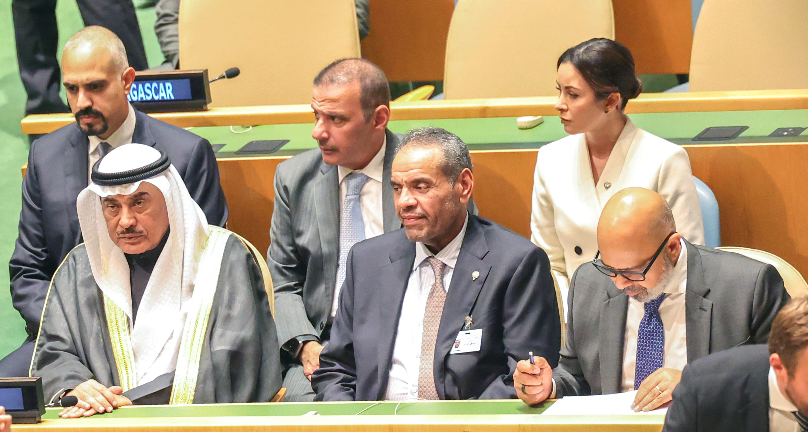ممثل حضرة صاحب السمو أمير البلاد الشيخ مشعل الأحمد الجابر الصباح سمو ولي العهد الشيخ صباح خالد الحمد الصباح يشارك في المؤتمر الدولي رفيع المستوى بشأن التسوية السلمية لقضية فلسطين وتطبيق حل الدولتين