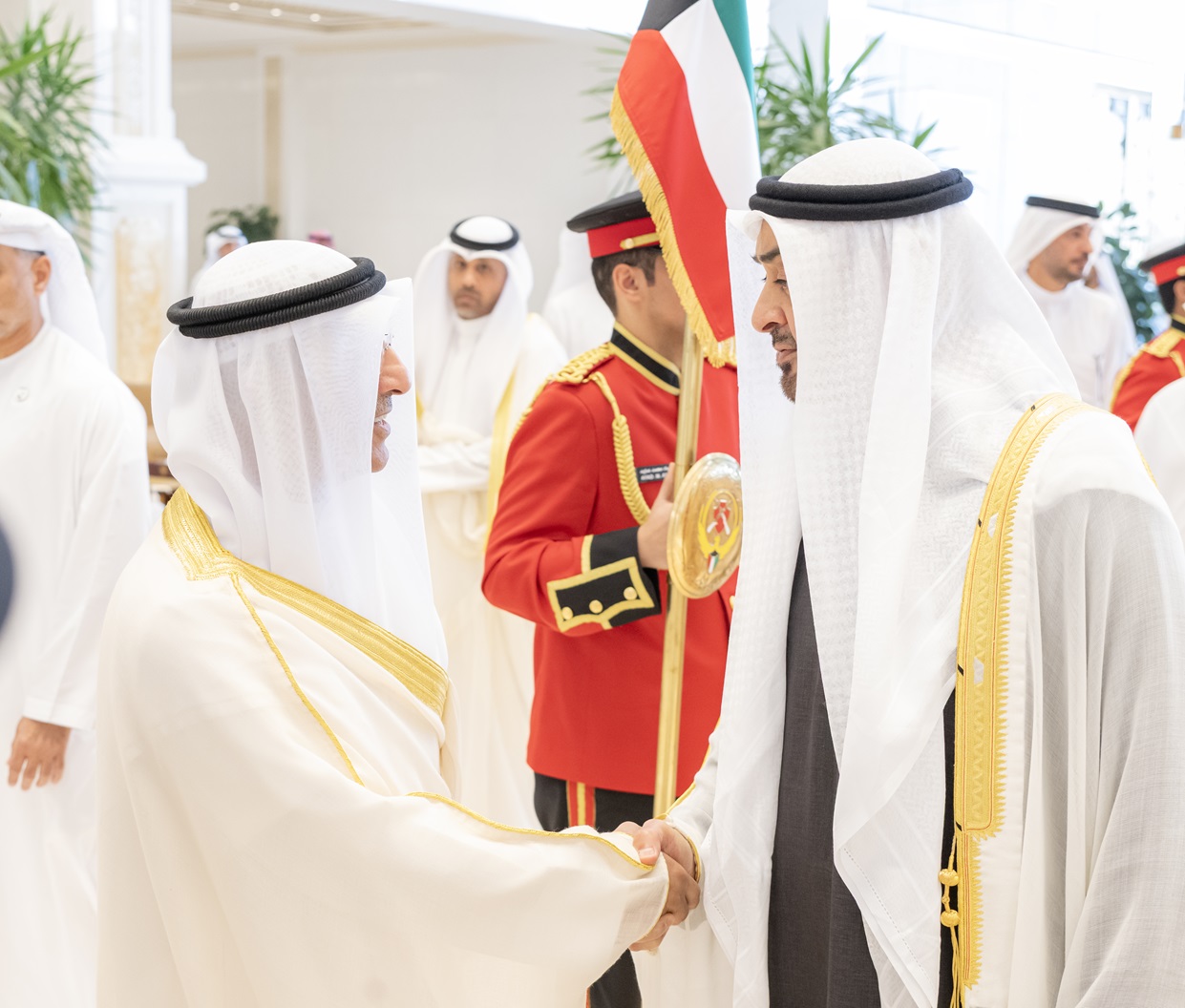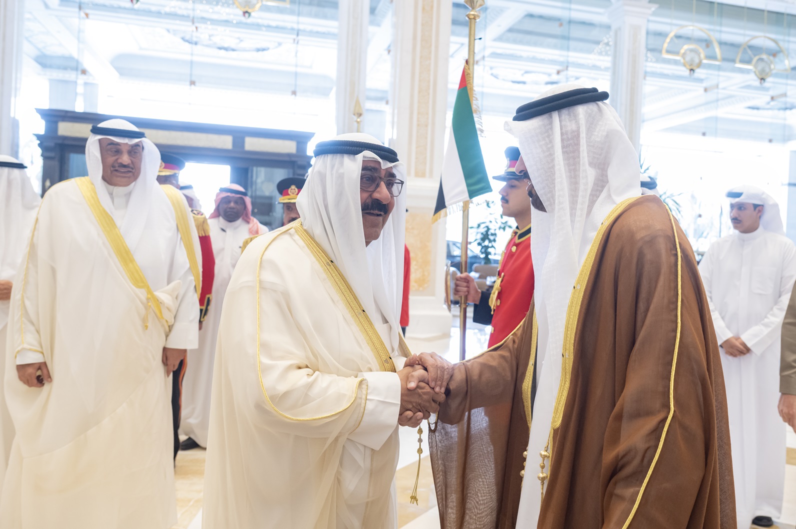 سمو أمير البلاد الشيخ مشعل الأحمد الجابر الصباح يستقبل سمو الشيخ محمد بن زايد آل نهيان رئيس دولة الإمارات العربية المتحدة والوفد المرافق