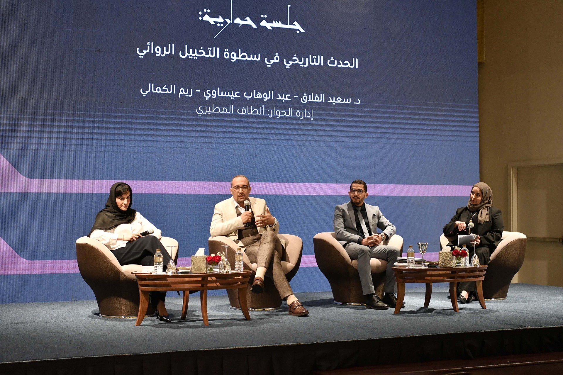 كما ناقشت الجلسة الحوارية (الحدث التاريخي في سطوة التخييل الروائي) التي أدارتها الباحثة ألطاف المطيري كيفية إعادة الروائي لكتابة الحدث التاريخي ودور التخييل في تفكيك أو إعادة صياغة الوقائع التاريخية ضمن رؤية أدبية جديدة تربط بين الحقيقة والسرد الإبداعي.