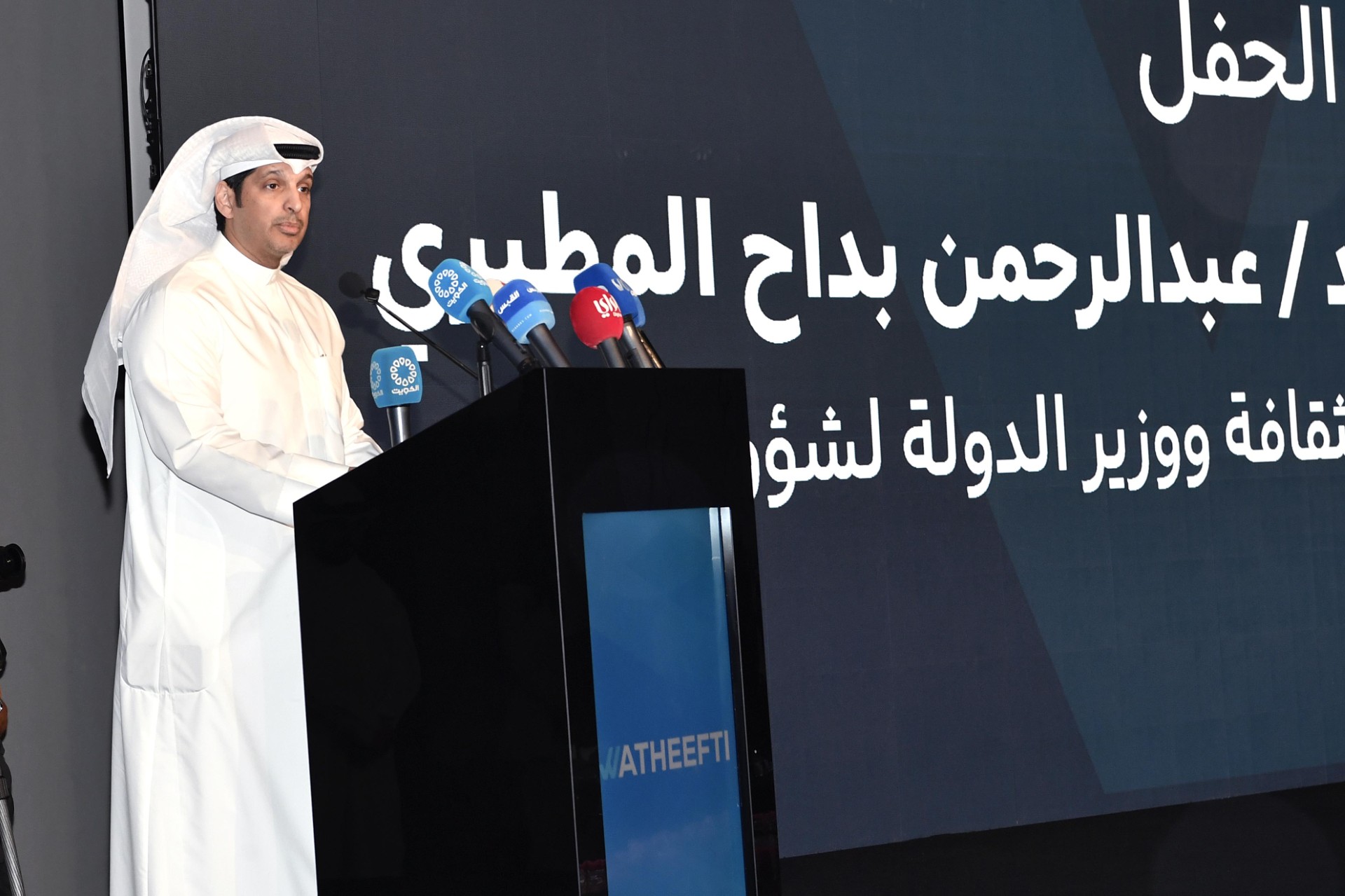 الكويت - 16 - 10 (كونا) -- أكد وزير الإعلام والثقافة ووزير الدولة لشؤون الشباب عبدالرحمن المطيري أن معرض (وظيفتي) يشكل منصة وطنية تجمع بين مؤسسات الدولة والقطاع الخاص لتوسيع مجالات التدريب والتوظيف وصناعة الفرص الجديدة بما يعزز ثقافة العمل المنتج.