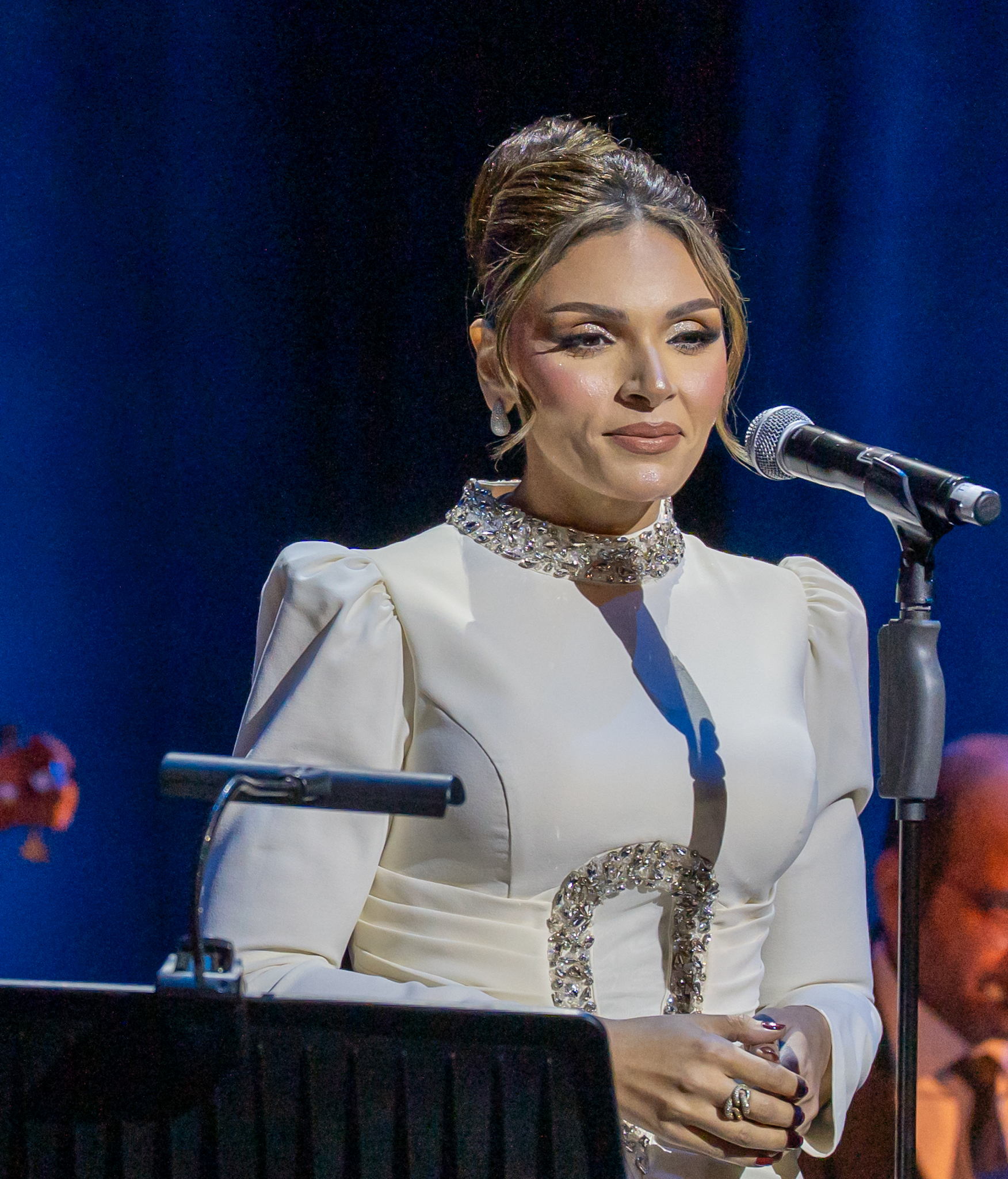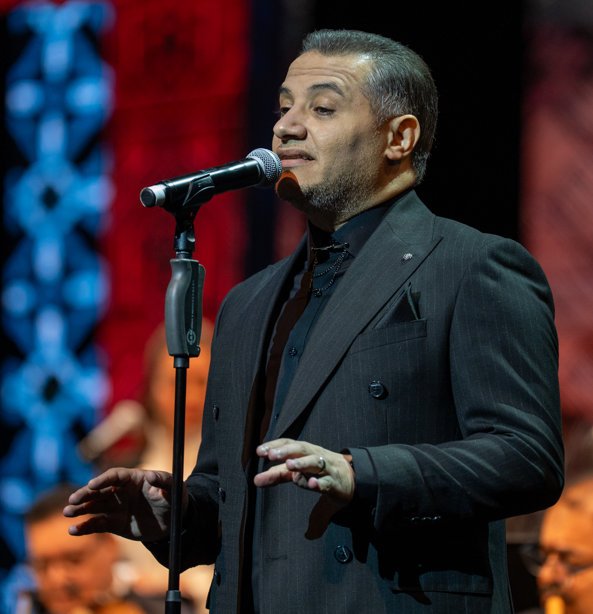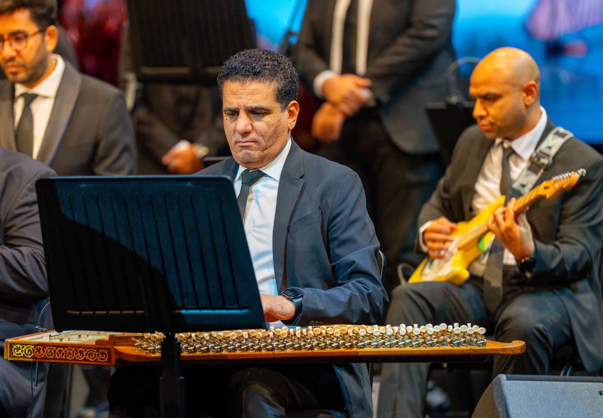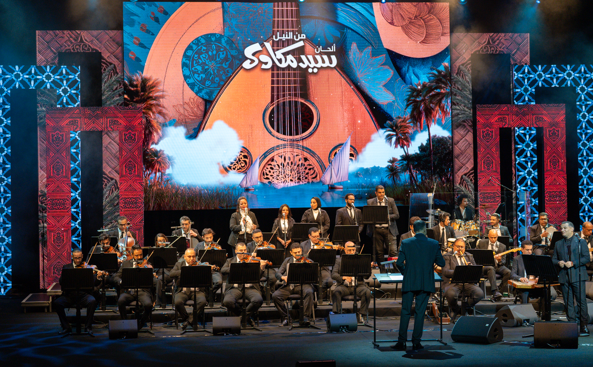 وتألقت في الحفل اليوم أصوات الفنانين رامي عبدالمنعم ومها الريس من جمهورية مصر العربية بمصاحبة الفرقة الموسيقية بقيادة المايسترو الكويتي الدكتور محمد البعيجان حيث قدموا باقة مختارة من أجمل ألحان سيد مكاوي التي خلدت في الوجدان العربي منها (قلبي سعيد) و (شعوري ناحيتك) للفنانة وردة الجزائرية و (يا مسهرني الليل) لكوكب الشرق أم كلثوم إضافة إلى (حلوين من يومنا والله) و (ما تفوتنيش أنا وحدي) و (حبيبي اللي بحبه) غناء سيد مكاوي وغيرها من الألحان التي أعادت الجمهور إلى زمن الفن الجميل.