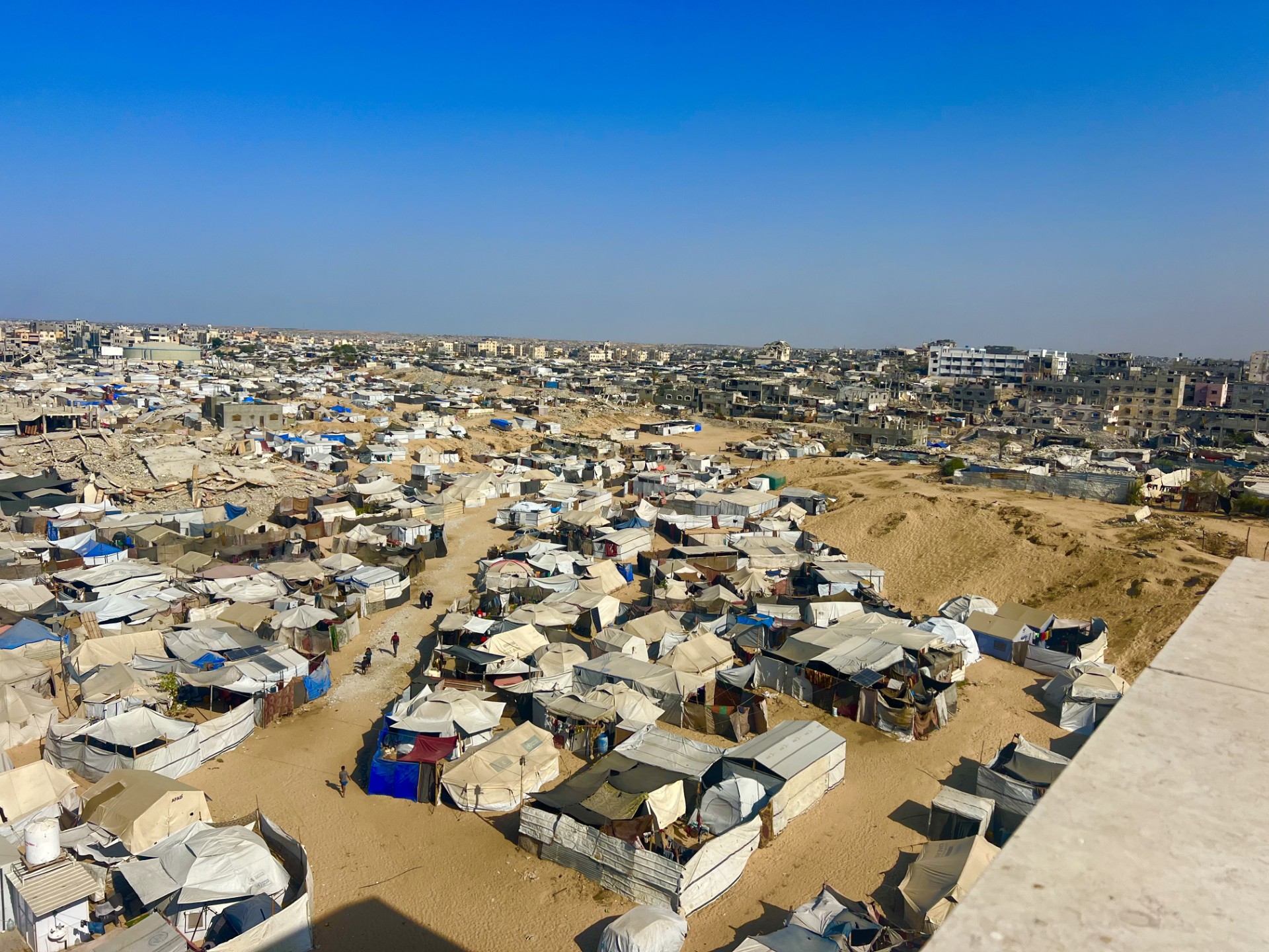 وتلاصقت الخيام ببعضها البعض لضيق المساحات وعدم وجود أماكن بديلة بسبب ما خلفه الاحتلال من دمار وفي ظل استمراره في سيطرته على أكثر من 50 في المئة من مساحة قطاع غزة حتى الآن ما أجبر الفلسطينيين على نصب الخيام بين الركام الذي تجاوز 61 مليون طن من الأنقاض المنتشرة في أرجاء القطاع كافة وفقا لتقارير أممية.