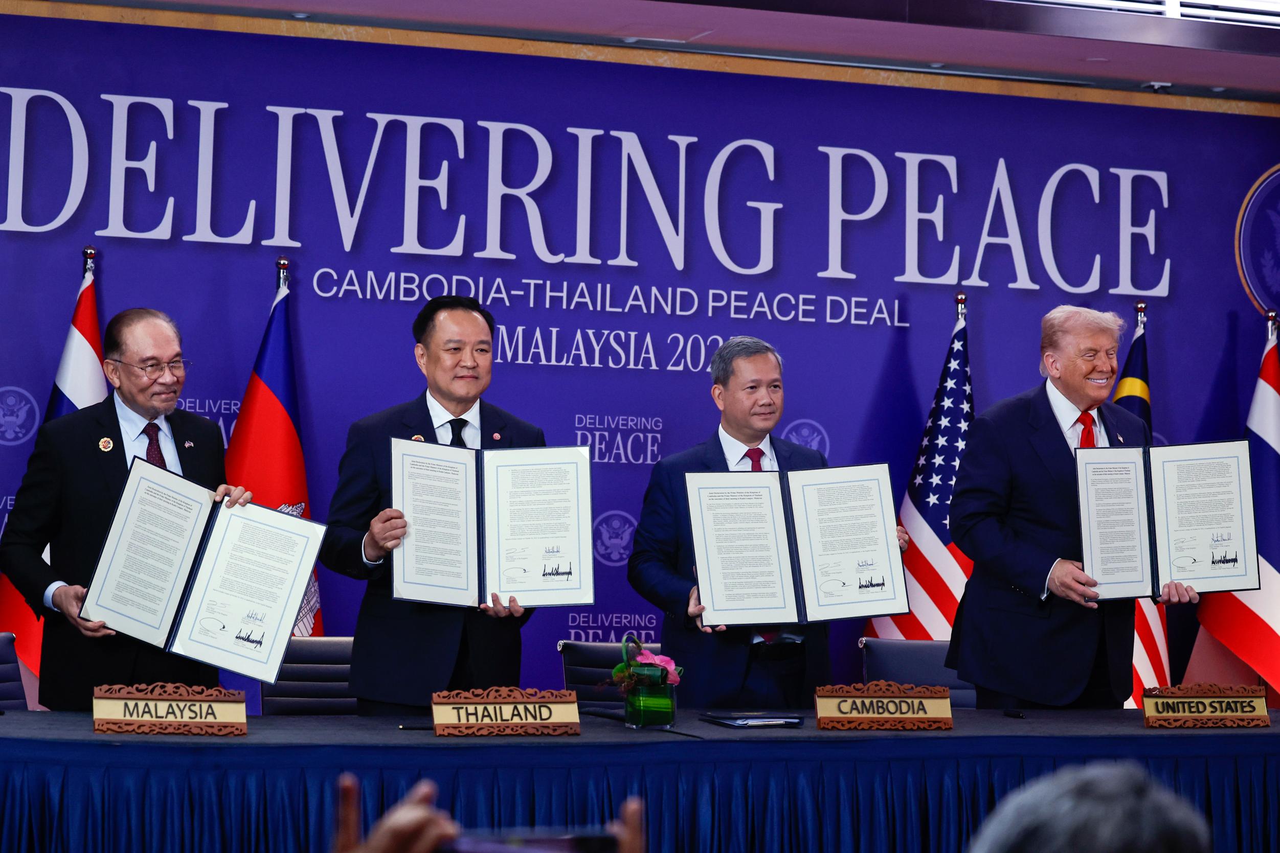 وقال الرئيس ترامب خلال مراسم التوقيع إن هذا اليوم "بالغ الأهمية" لشعوب جنوب شرق آسيا كافة حيث شهد إبرام "اتفاق تاريخي لإنهاء الصراع العسكري" بين البلدين اللذين خاضا نزاعا طويلا أوقع قتلى وتسبب في حركة نزوح واسعة.