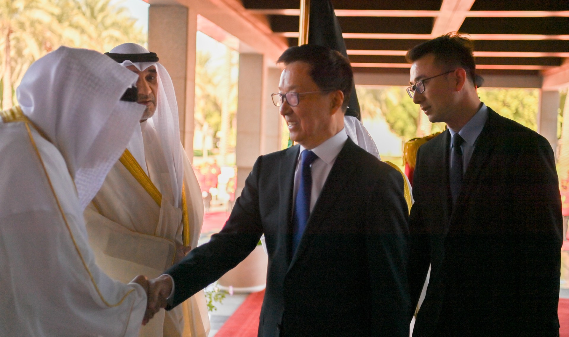 The reception ceremony began with the national anthems of both countries. The Chinese delegation included Vice Chairman of the National Development and Reform Commission, Wang Changlin, the Vice Minister of Transport, Xu Chengguang, the Chinese government's special envoy for the Middle East issue, Zhai Jun, and the Assistant Minister of Commerce, Yuan Xiaoming.