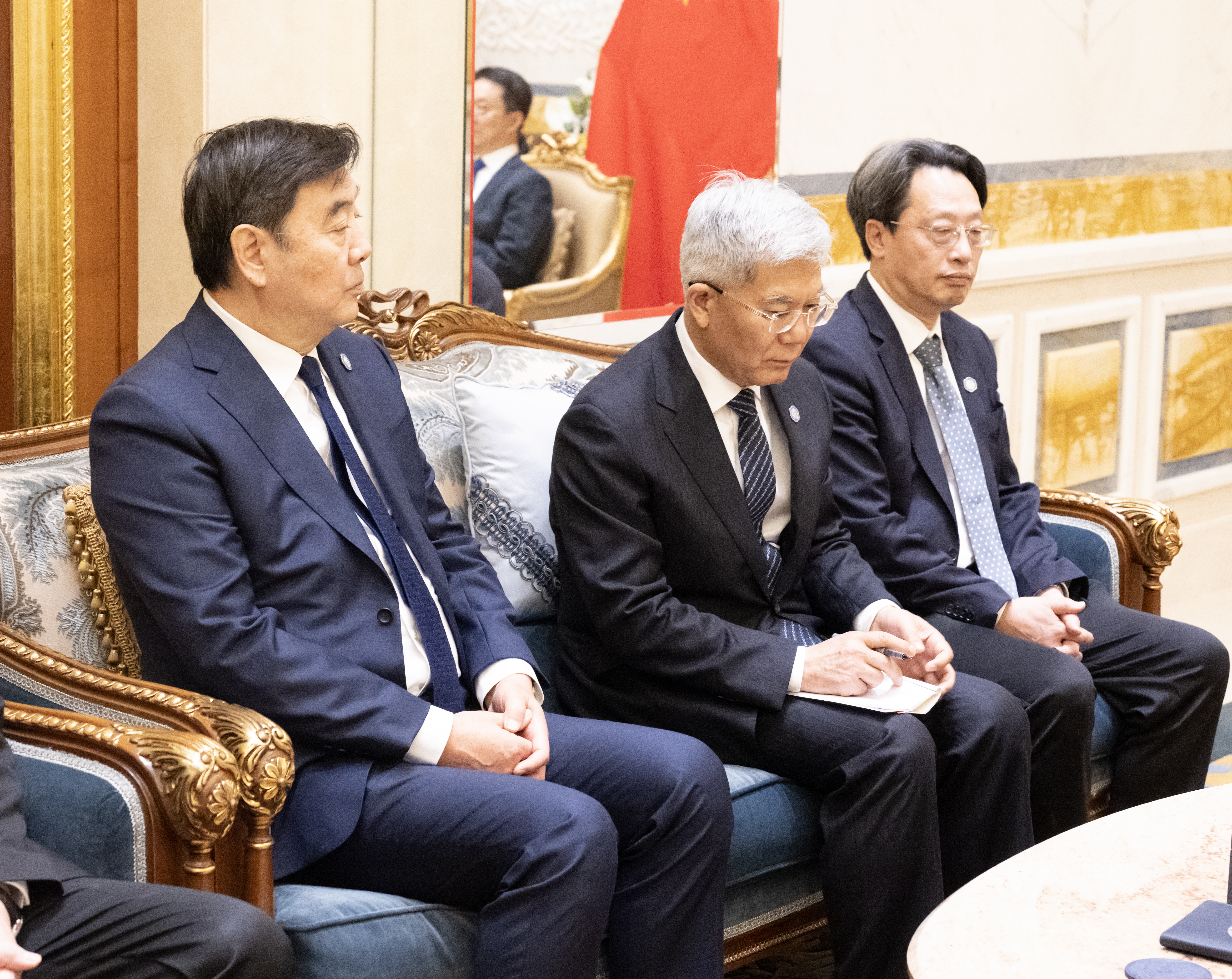 حضر اللقاء معالي وزير شؤون الديوان الأميري الشيخ حمد جابر العلي الصباح ومعالي وزير الأشغال العامة رئيس بعثة الشرف المرافقة الدكتورة نورة محمد المشعان وسعادة مدير مكتب حضرة صاحب السمو أمير البلاد الفريق متقاعد جمال محمد الذياب وسعادة وكيل الشؤون الخارجية بالديوان الاميري مازن عيسى العيسى وسفير دولة الكويت لدى جمهورية الصين الشعبية الصديقة جاسم إبراهيم الناجم. (النهاية)