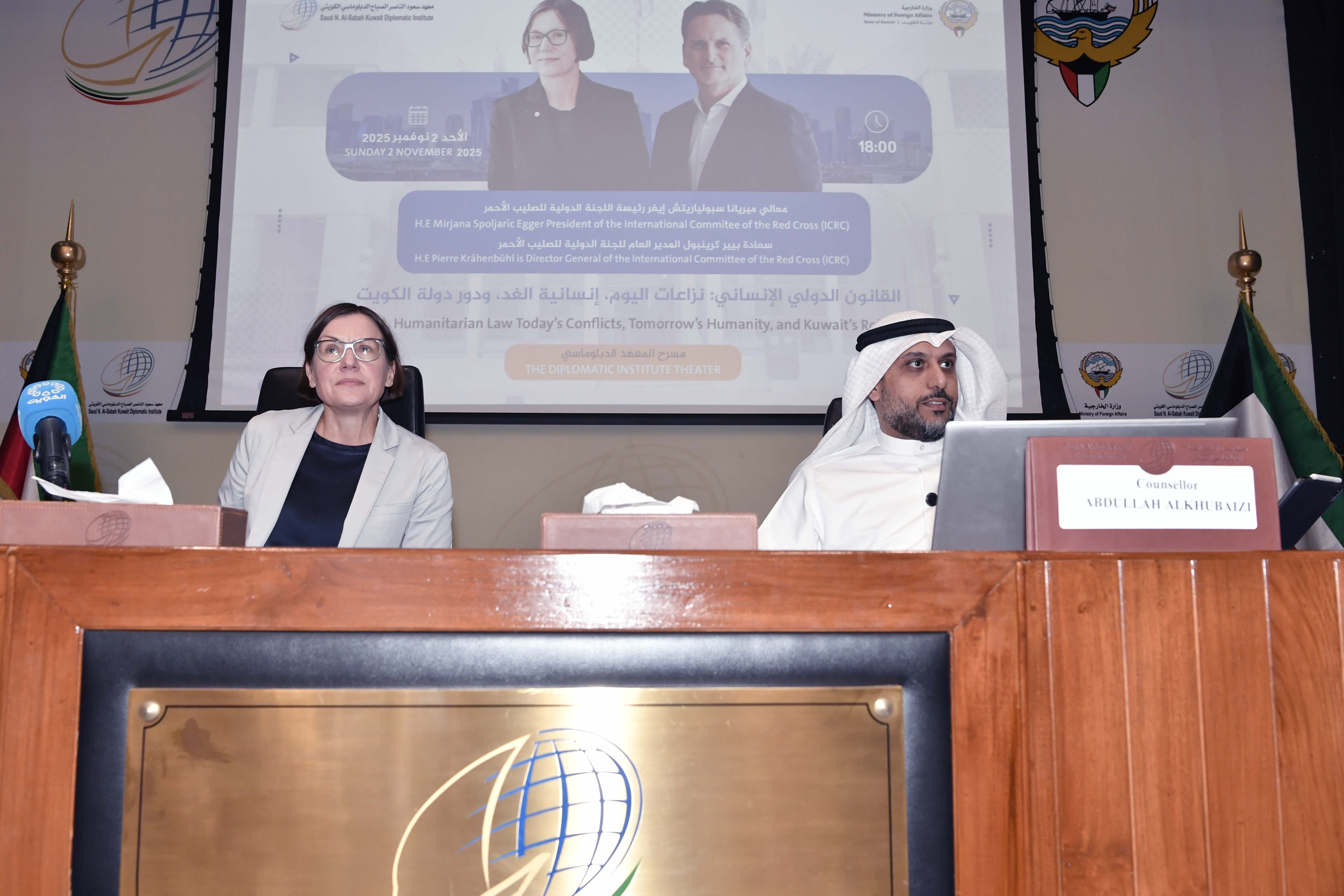 ورأت أن سياسة دولة الكويت واستراتيجيتها تتسق مع ما تسعى إليه (اللجنة) خاصة ما يتعلق بالالتزام اتفاقية جنيف بشأن حماية الأشخاص المدنيين في وقت الحرب مثمنة دور دولة الكويت في تطبيق القوانين الإنسانية الدولية في مؤسساتها وعملها ما يجعلها مثالا يحتذى في كيفية إقرار التشريعات وتنفيذها.