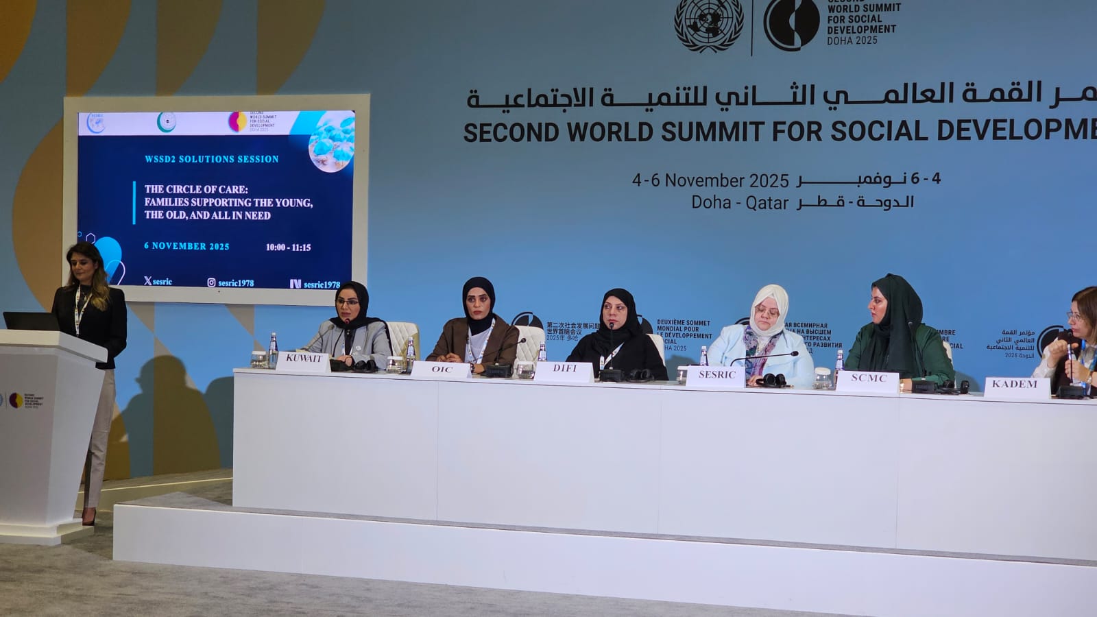 جاء ذلك خلال مشاركة الوزيرة الحويلة في حدث جانبي عقد ضمن أعمال مؤتمر القمة العالمي الثاني للتنمية الاجتماعية الذي يعقد في العاصمة القطرية الدوحة تحت عنوان (دائرة الرعاية: الأسر التي تدعم الصغار وكبار السن وذوي الإعاقة) بتنظيم مركز الأبحاث الإحصائية والاقتصادية والاجتماعية والتدريب للدول الإسلامية التابع لمنظمة التعاون الإسلامي في أنقرة.