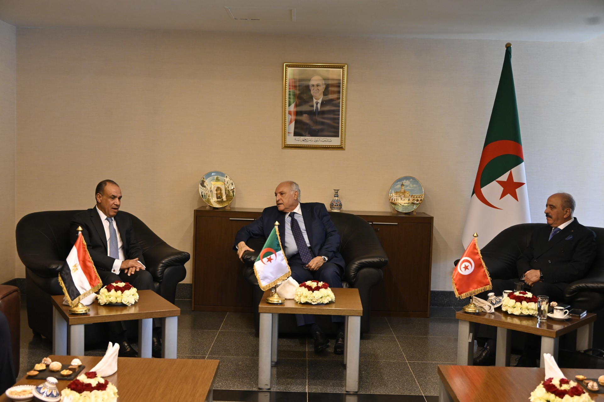 وزراء خارجية الجائر ومصر وتونس قبيل انطلاق الاجتماع