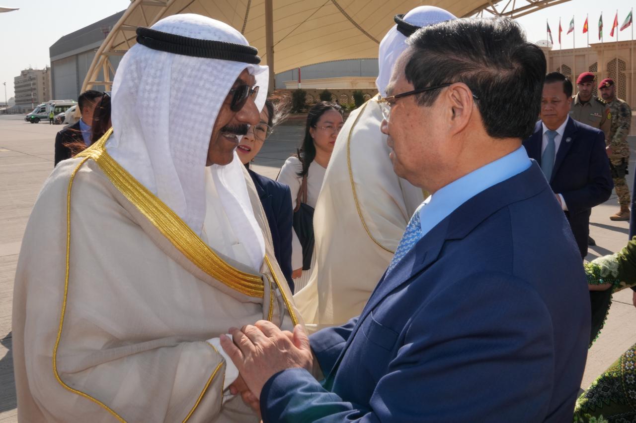 وكان في وداعه على أرض مطار الكويت الدولي المستشار بديوان رئيس مجلس الوزراء رئيس بعثة الشرف المرافقة الشيخ الدكتور باسل حمود الصباح ووزير الشؤون الاجتماعية وشؤون الأسرة والطفولة الدكتورة أمثال هادي الحويلة ومساعد وزير الخارجية لشؤون آسيا السفير سميح جوهر حيات وسفير دولة الكويت لدى جمهورية فيتنام الاشتراكية يوسف عاشور الصباغ.(النهاية)