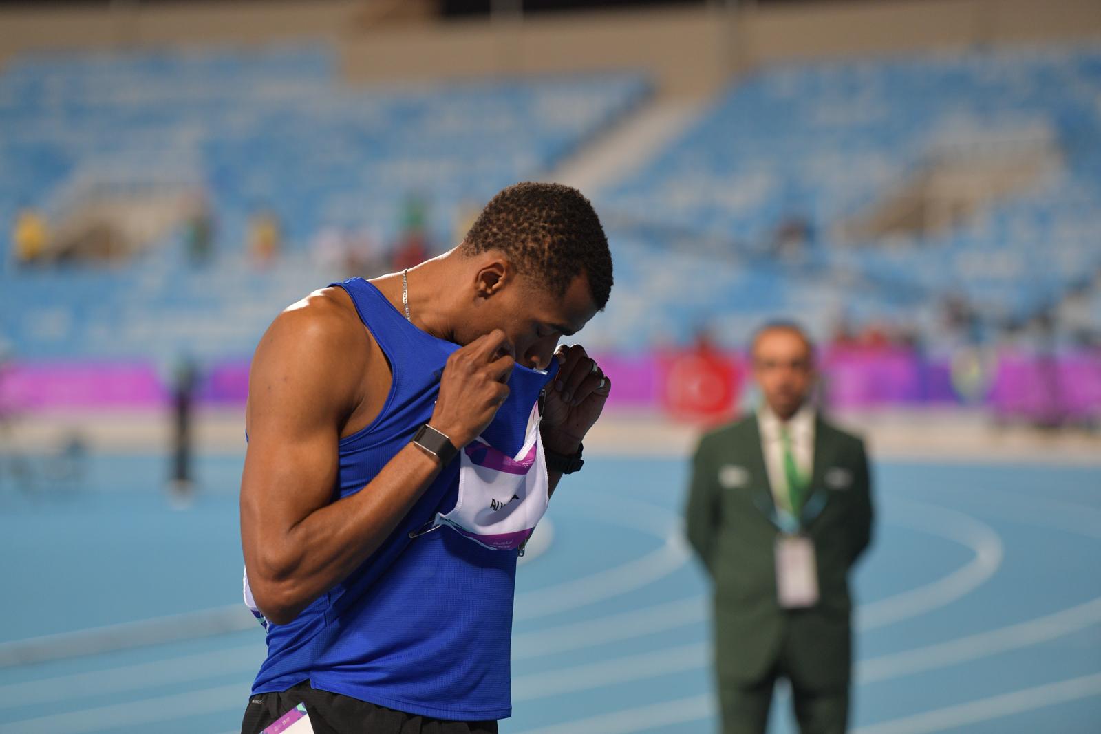اللاعب الكويتي يعقوب اليوحة يحرز ذهبية سباق 110 م حواجز في دورة العاب التضامن الإسلامي