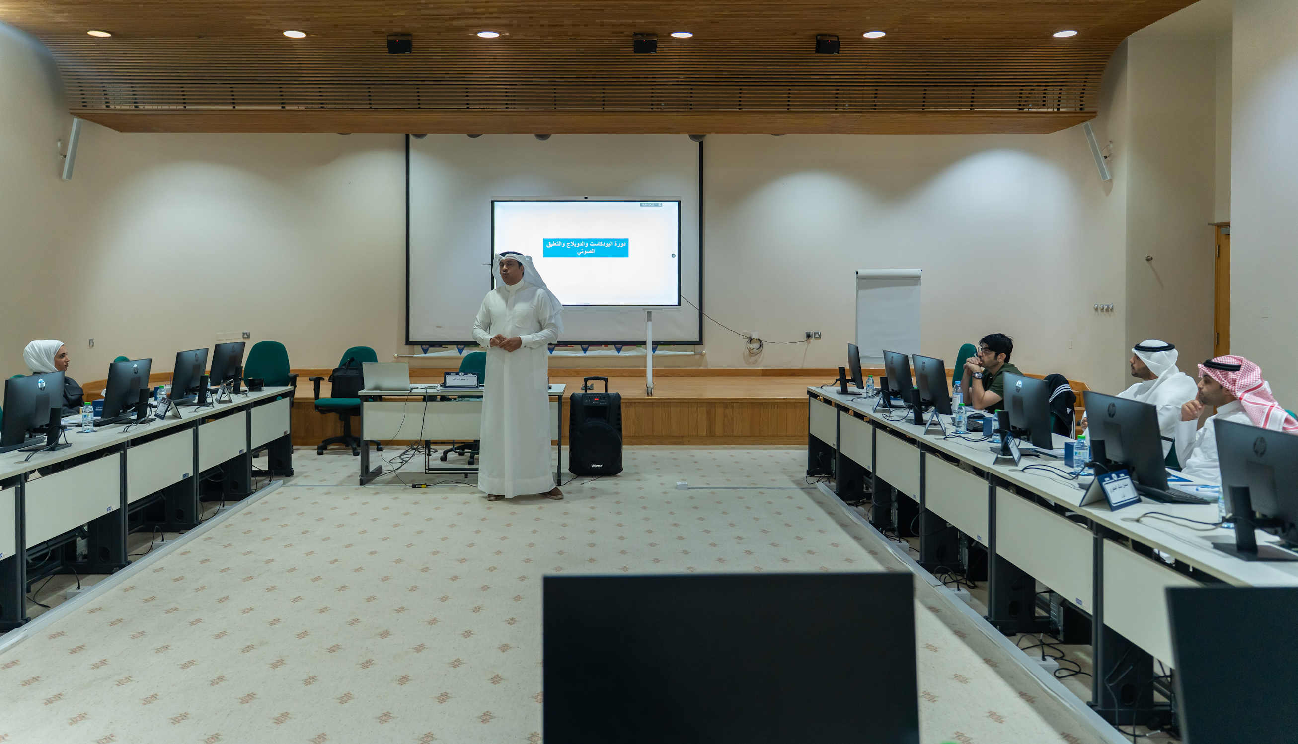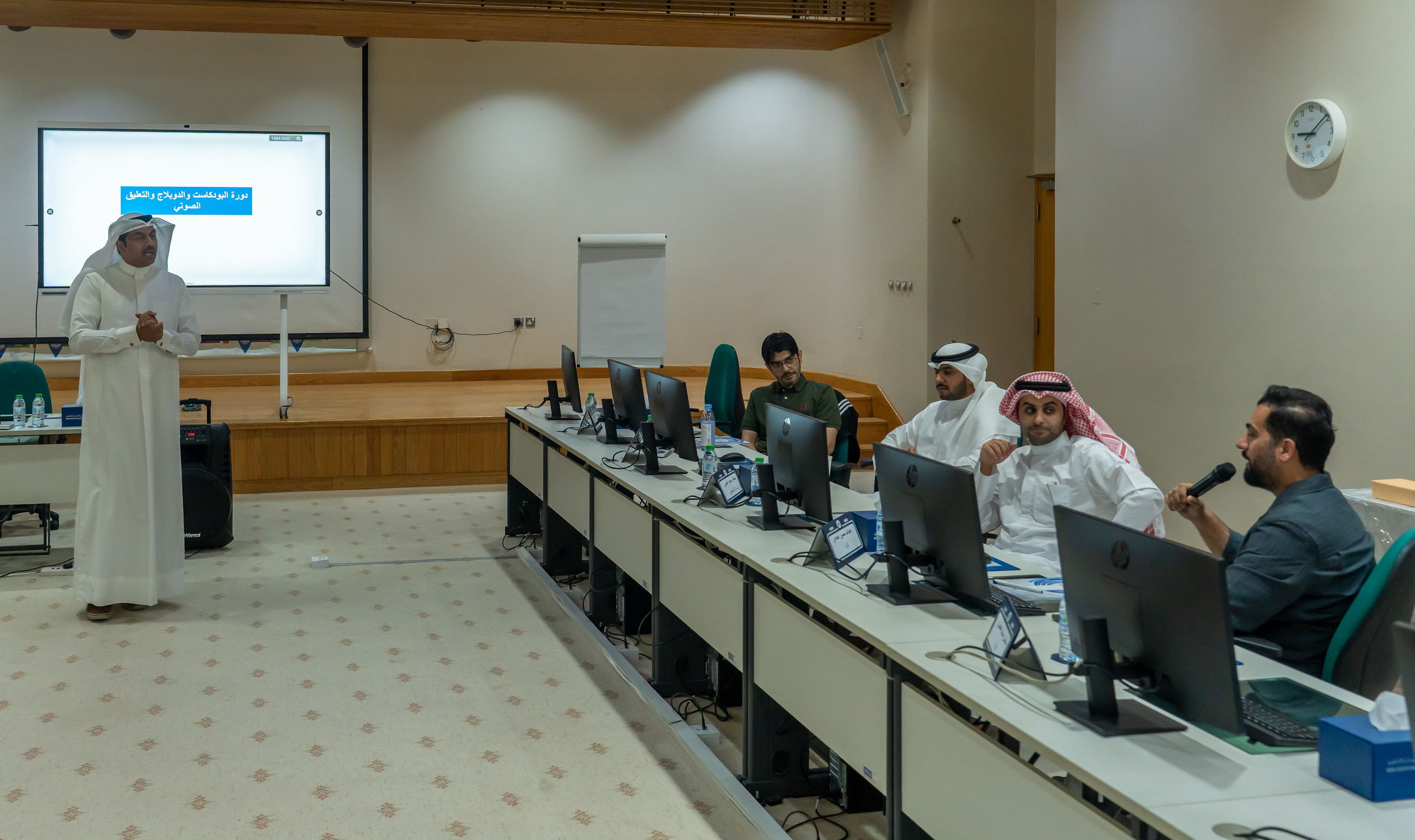 ويتطرق البرنامج الذي يستمر حتى 27 نوفمبر الجاري ويقدمه الإعلامي الدكتور بسام الجزاف إلى إنتاج بودكاست احترافي يشمل اختيار الفكرة وتحديد الجمهور وكتابة النص والتسجيل والتحرير والنشر كذلك تعزيز مهارات الإلقاء بمستوى مهني في نبرة الصوت والتنفس والإيقاع والتلوين الصوتي والتعبير السمعي المؤثر.