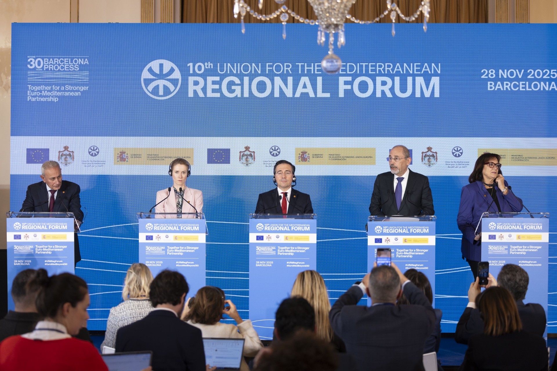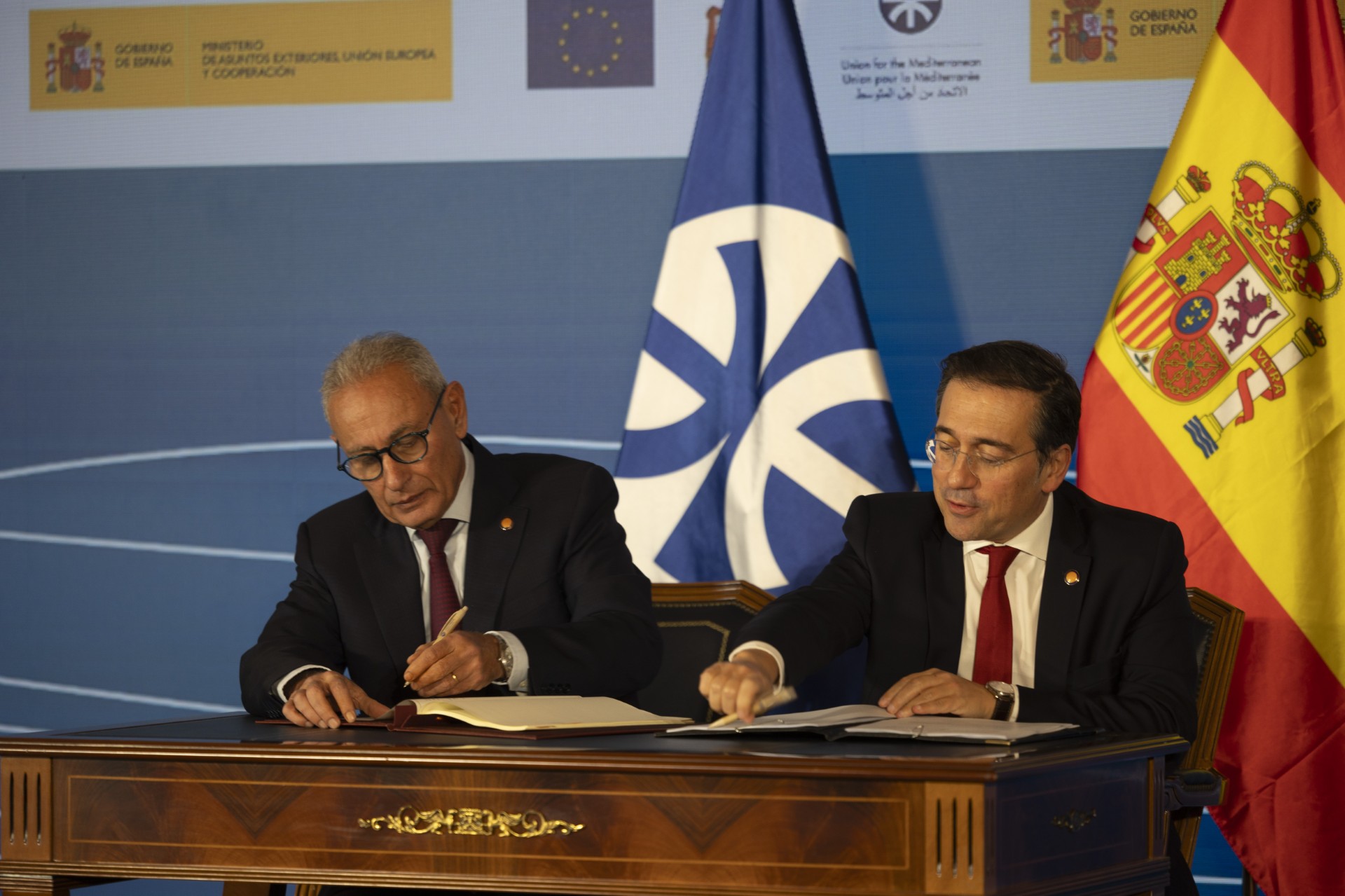 جاء ذلك في مؤتمر صحفي مشترك لوزير الخارجية الإسباني خوسيه مانويل ألباريس والممثلة العليا للاتحاد الأوروبي للشؤون الخارجية والسياسة الأمنية كايا كالاس ونائب رئيس الوزراء ووزير الخارجية والمغتربين الأردني أيمن الصفدي والأمين العام للاتحاد من أجل المتوسط ناصر كامل والمفوضة الأوروبية لشؤون المتوسط دوبرافكا شويسا.