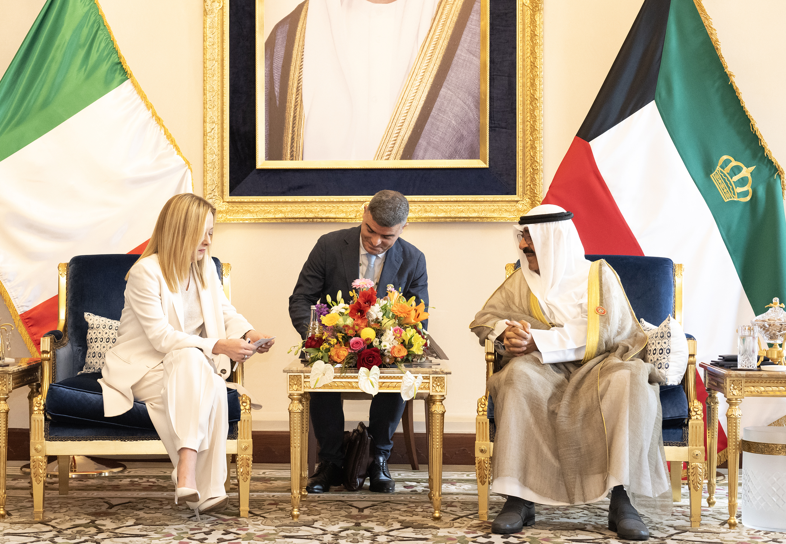 المنامة - 3 - 12 (كونا) -- استقبل حضرة صاحب السمو أمير البلاد الشيخ مشعل الأحمد الجابر الصباح حفظه الله ورعاه ظهر اليوم معالي جورجيا ميلوني رئيسة وزراء جمهورية إيطاليا الصديقة والوفد المرافق وذلك بمقر إقامة سموه في مملكة البحرين الشقيقة.