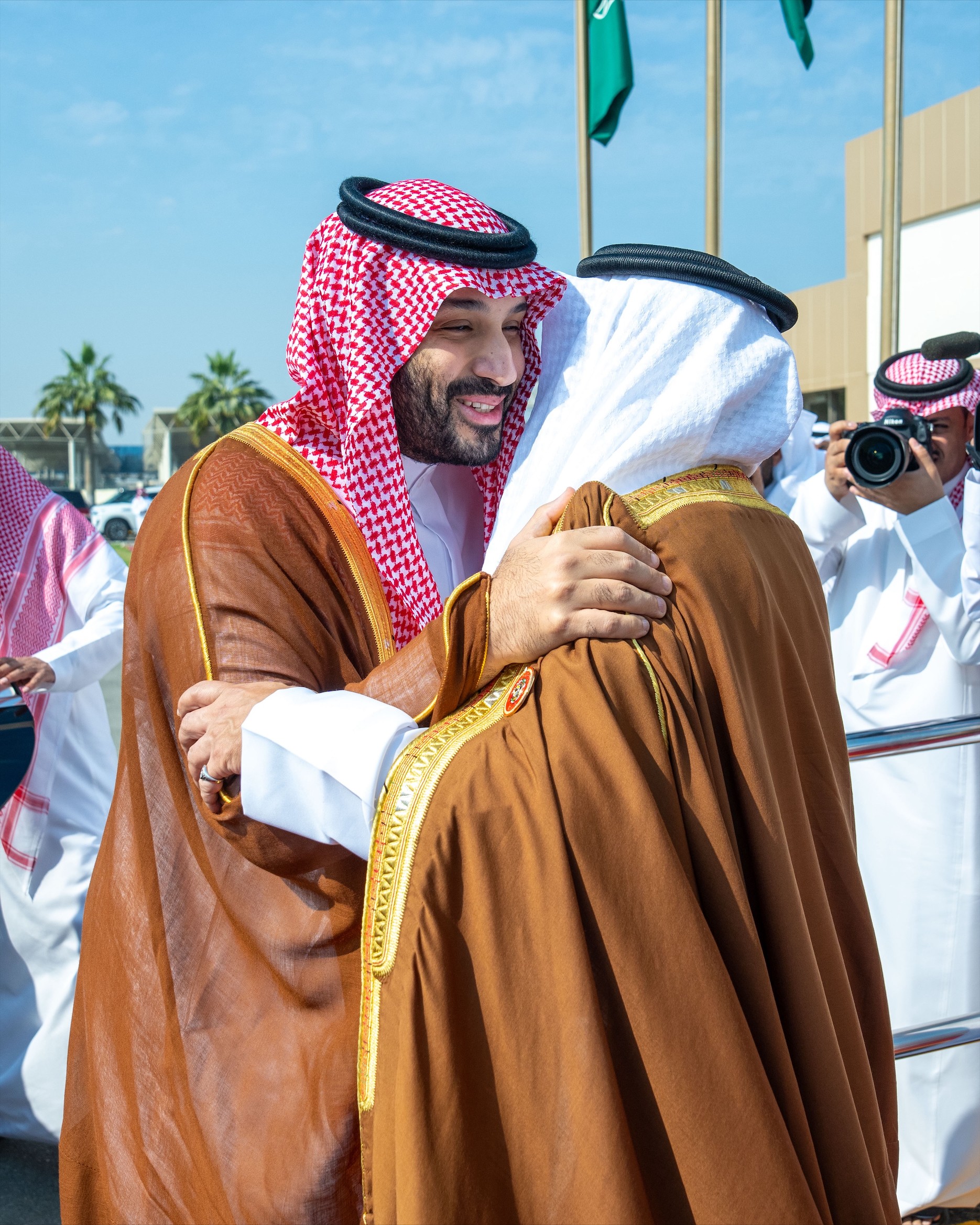 وكان في مقدمة مستقبلي ولي العهد السعودي ولي العهد رئيس مجلس الوزراء البحريني الأمير سلمان بن حمد آل خليفة.