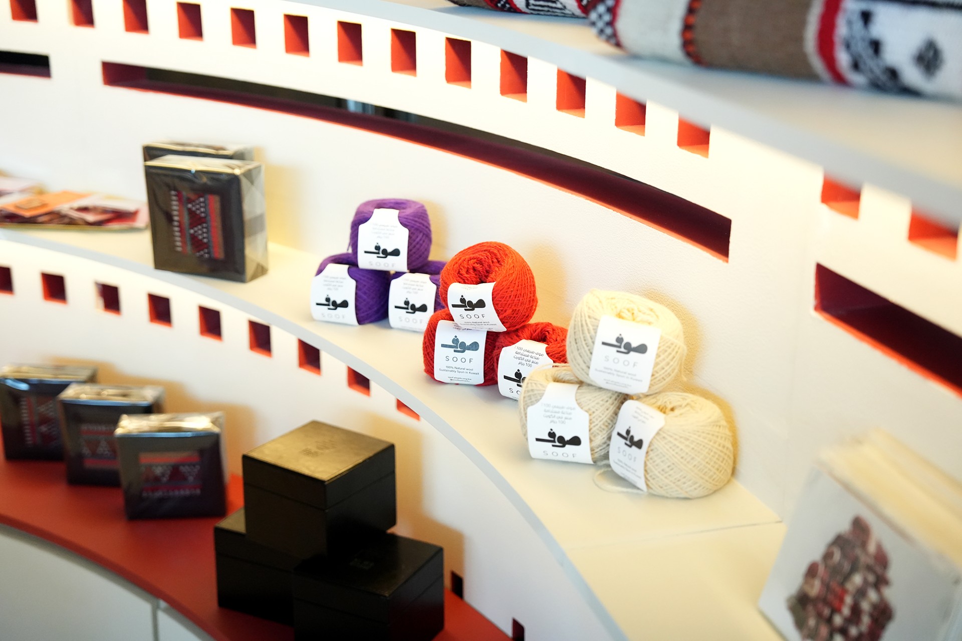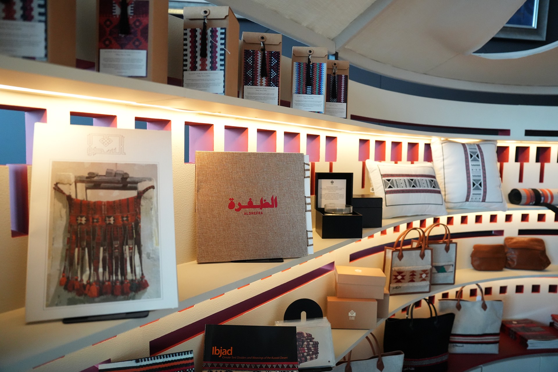 ويضم المنفذ الذي تم تصميمه على هيئة خيمة تراثية كويتية تعكس روح البادية وأصالة السدو مجموعة واسعة من المنتجات المصنوعة يدويا بنقوش السدو التقليدية وتشمل منتجات منسوجة بالكامل من السدو وقطعا حديثة تحمل نقوش السدو ومنتجات خاصة بالمواد والأدوات المستخدمة في صناعة السدو إضافة إلى كتب تعليمية وتوعوية حول هذا الفن العريق وأساليبه ومراحله.
