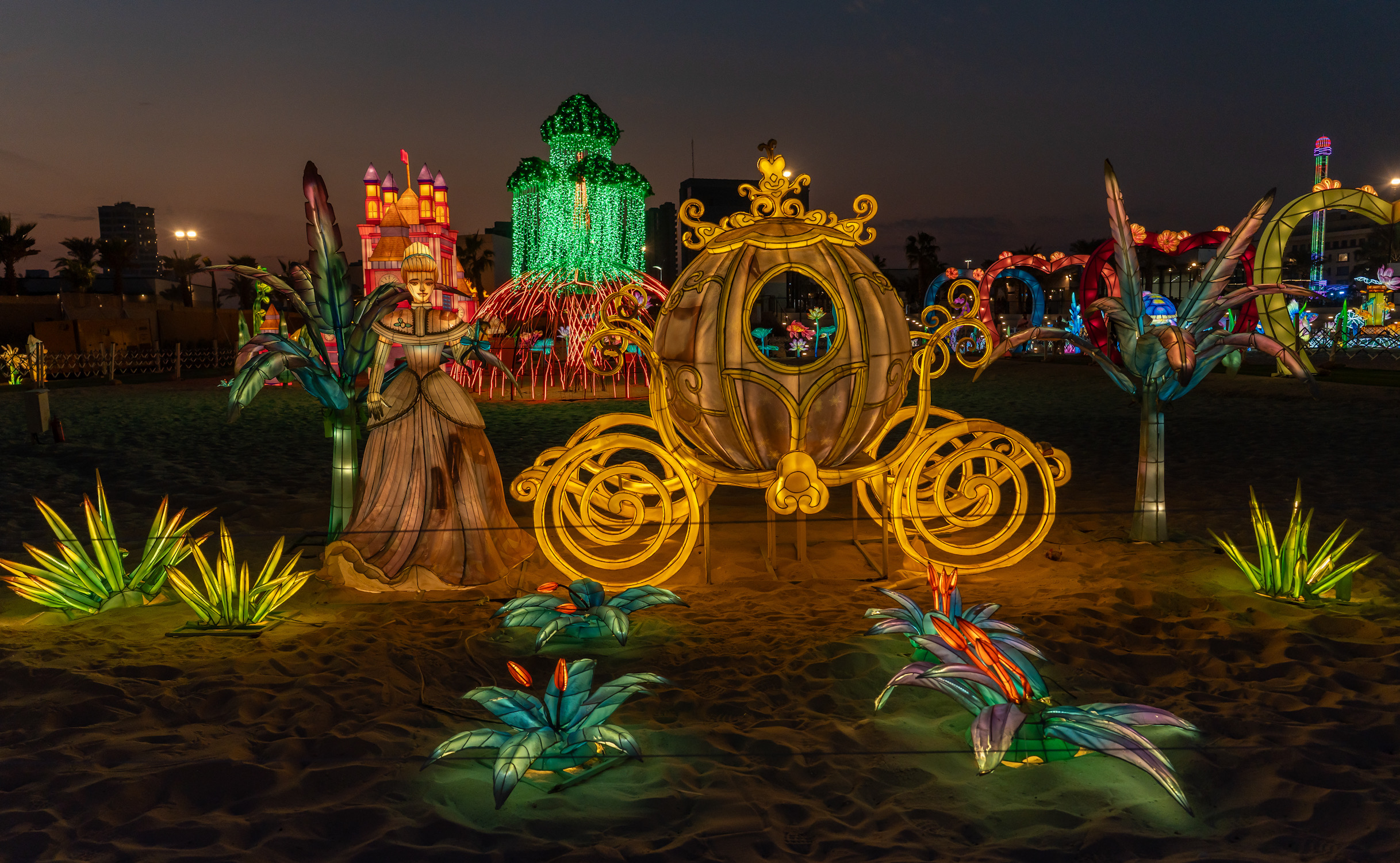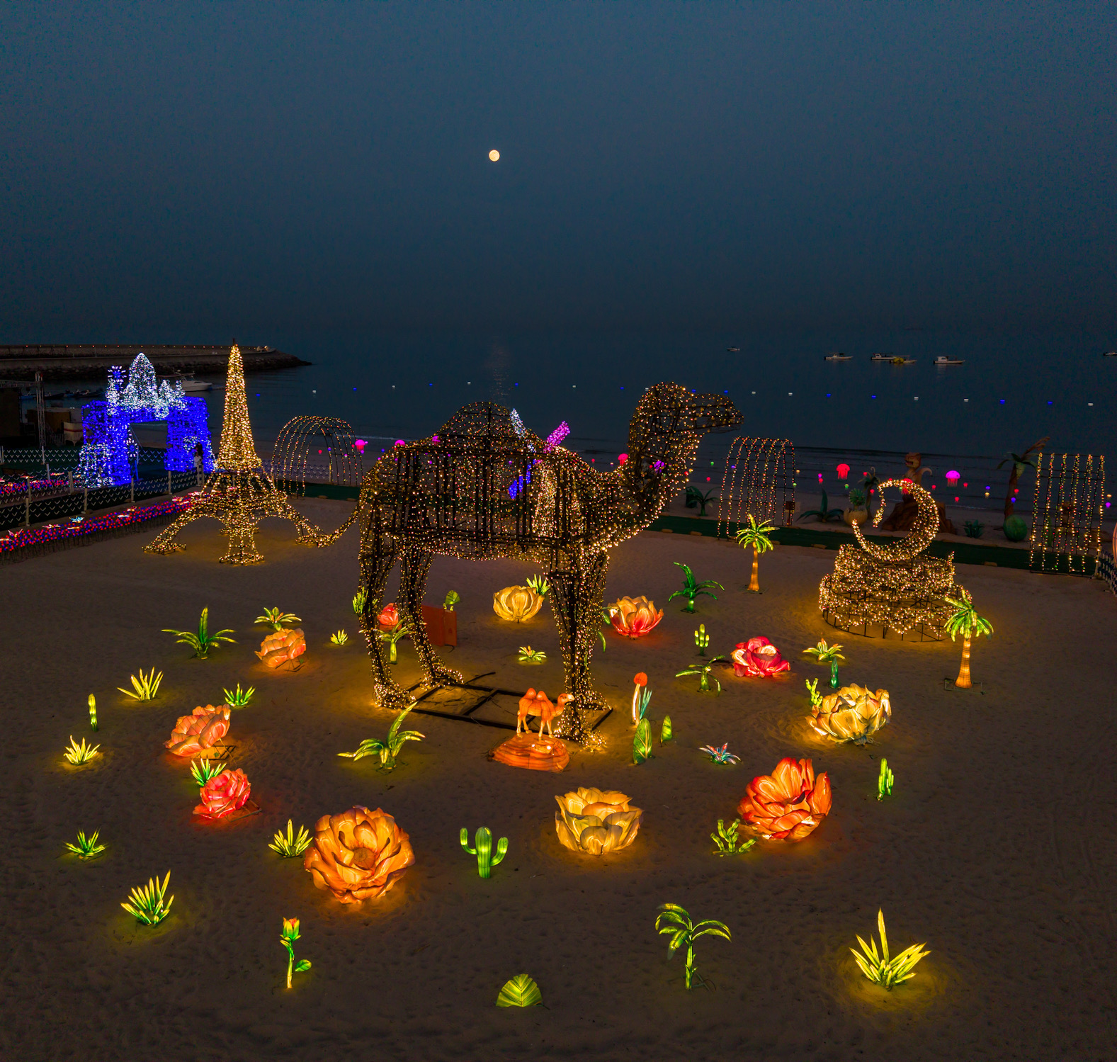 وتعد (المدينة الضوئية) إحدى عناصر الجذب في المشروع فحين يدخل الزوار إليها تتحول الممرات إلى عالم ممتلئ بالألوان المتوهجة تتداخل فيها الأضواء والمؤثرات التفاعلية والمجسمات المضيئة لتصنع أجواء تحاكي الخيال.