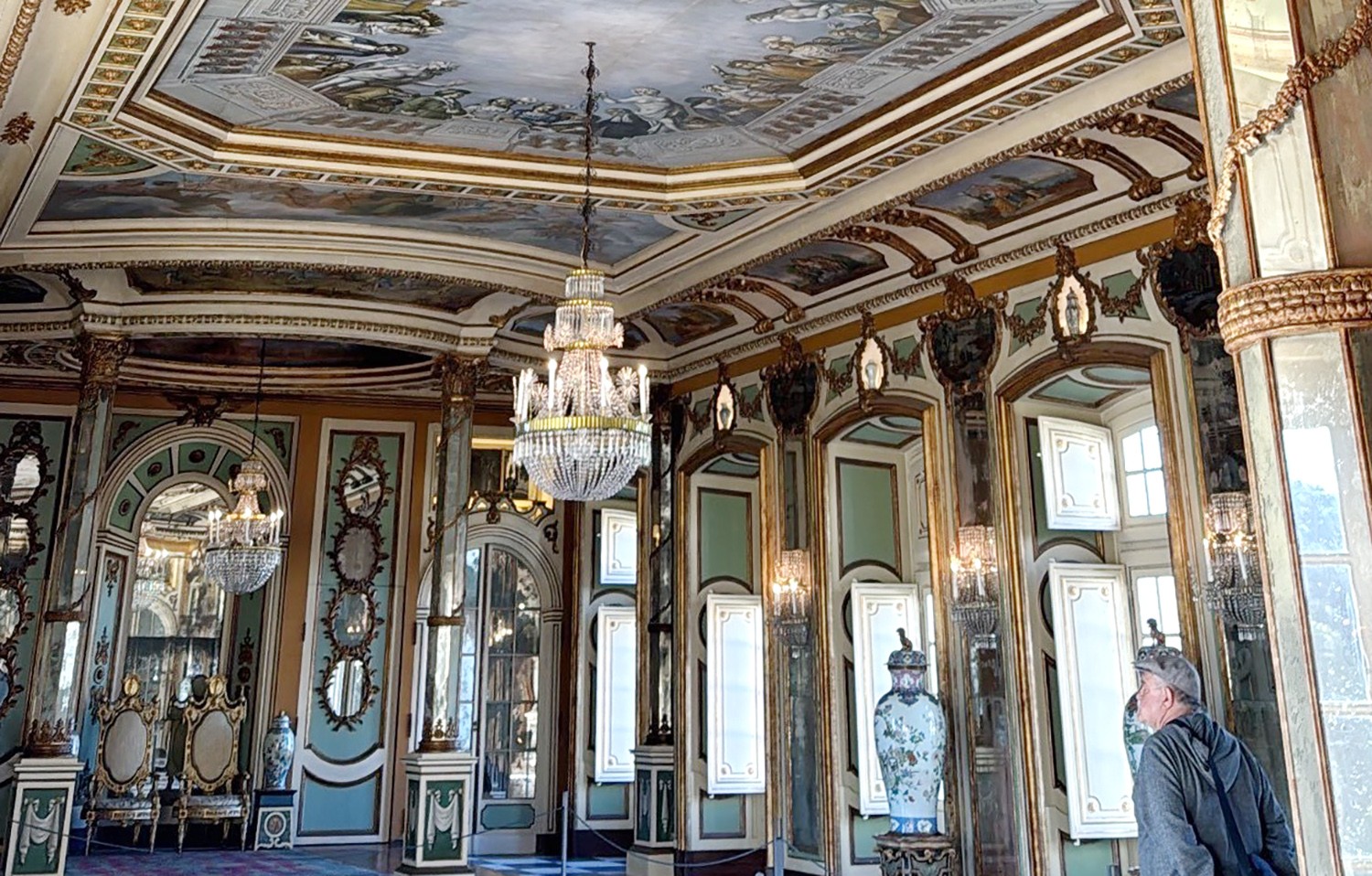 وتتوزع داخل القصر الذي أصبح المقر الصيفي للعائلة المالكة قبل أن يتحول لاحقا إلى مسرح لأحداث سياسية مهمة قاعات مذهلة التصميم بينها قاعة الموسيقى وغرفة العرش التي تزدان بالمرايا والثريات والخشب المنحوت.
