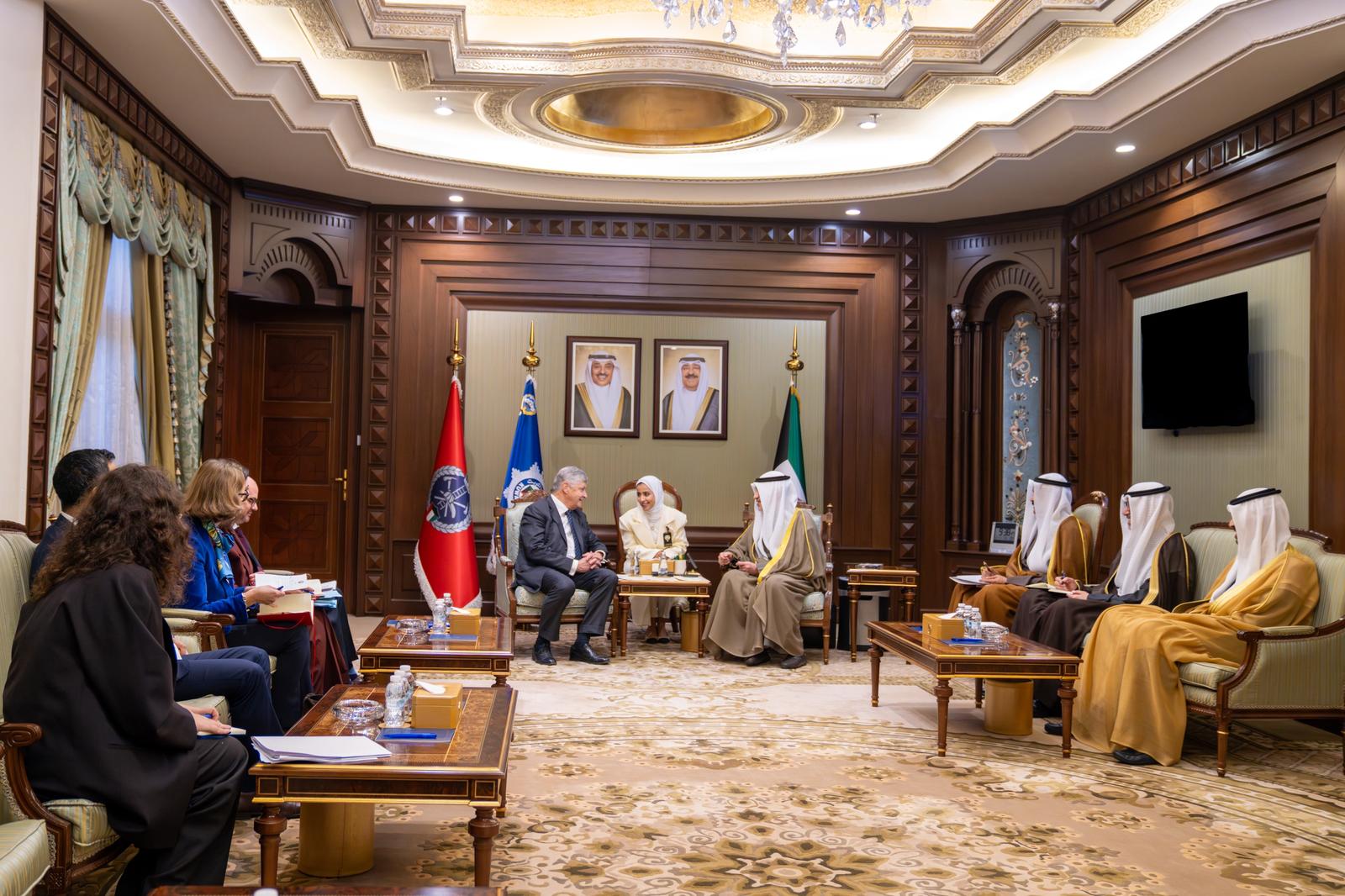 رئيس مجلس الوزراء بالإنابة ووزير الداخلية الشيخ فهد يوسف سعود الصباح يستقبل وزير (التجارة الخارجية) الفرنسي نيكولا فوريسييه