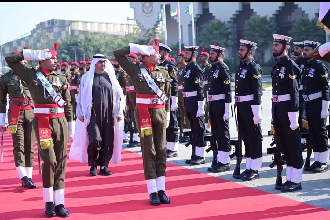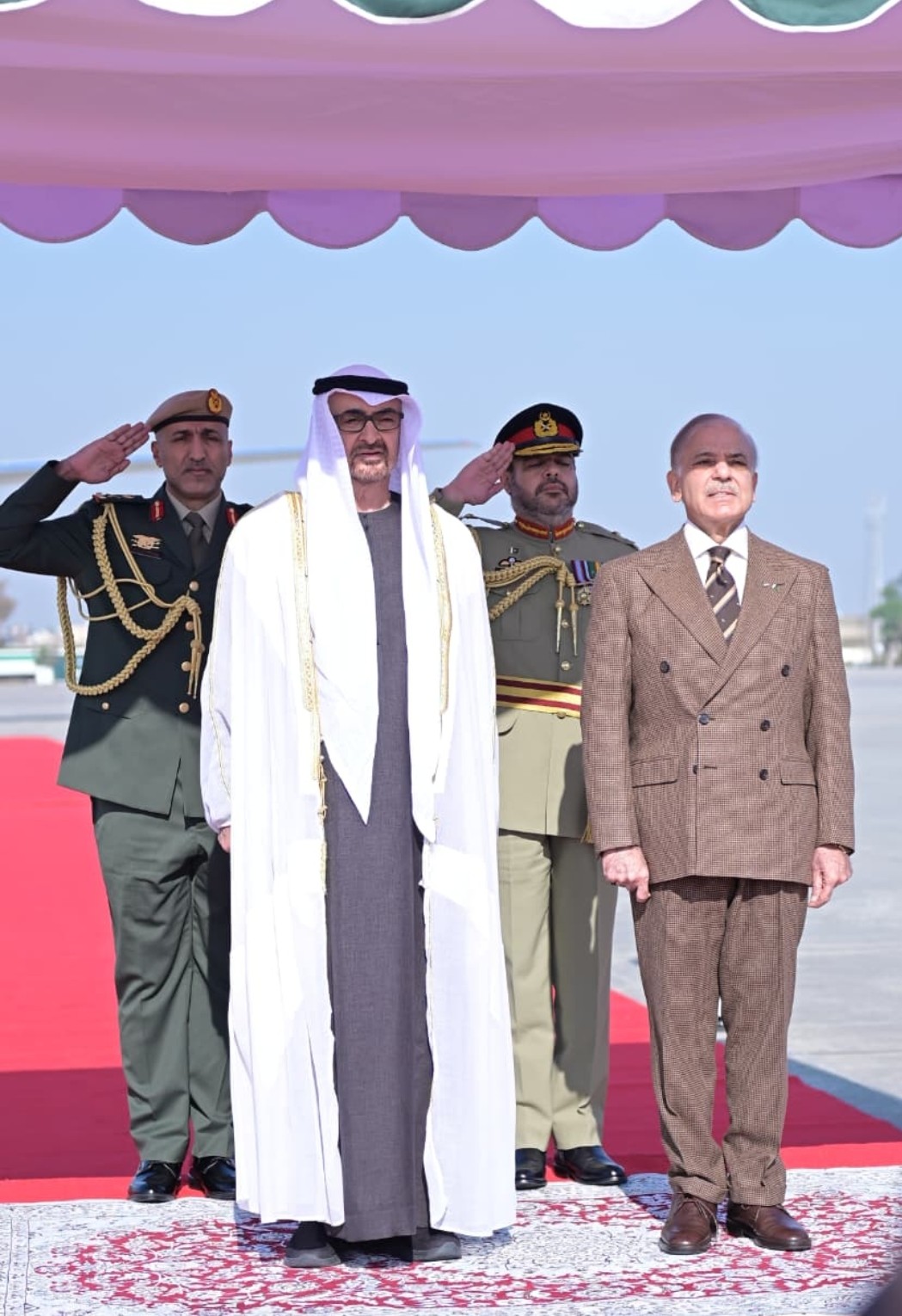 وكان في استقبال الشيخ محمد بن زايد آل نهيان لدى وصوله إلى مطار (إسلام آباد) رئيس الوزراء الباكستاني فيما يرافقه وفد رفيع المستوى يضم عددا من الوزراء وكبار المسؤولين وذلك في أول زيارة له إلى باكستان بصفته رئيسا لدولة الإمارات العربية المتحدة.
