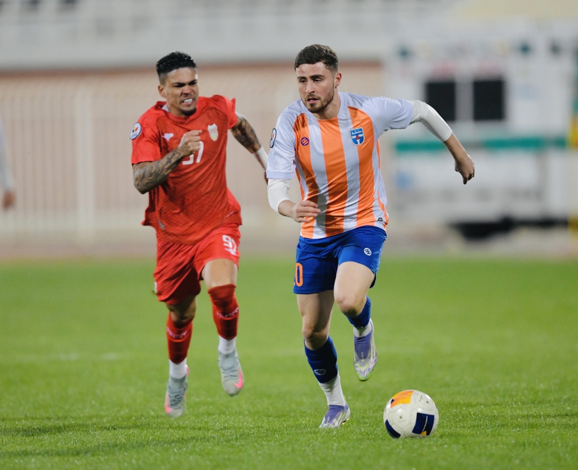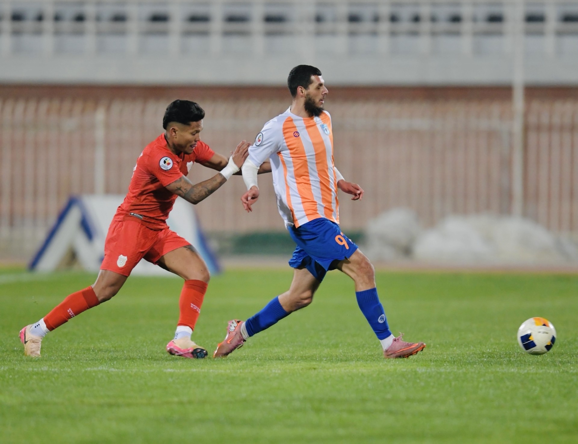 لاعب الصليبيخات يحاول المرور من لاعب كاظمة