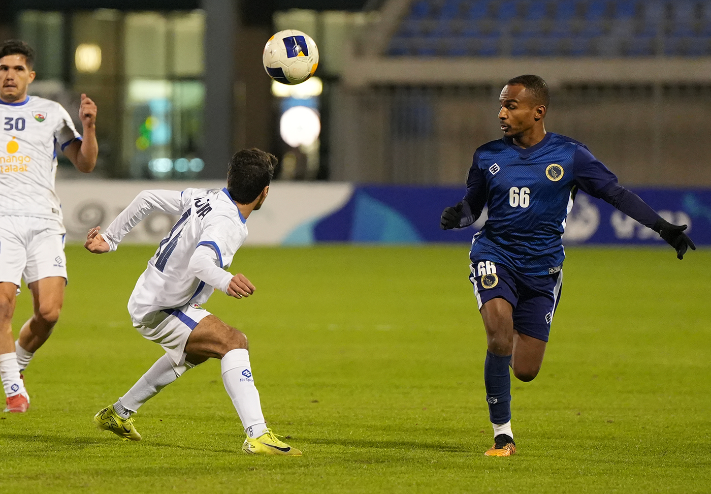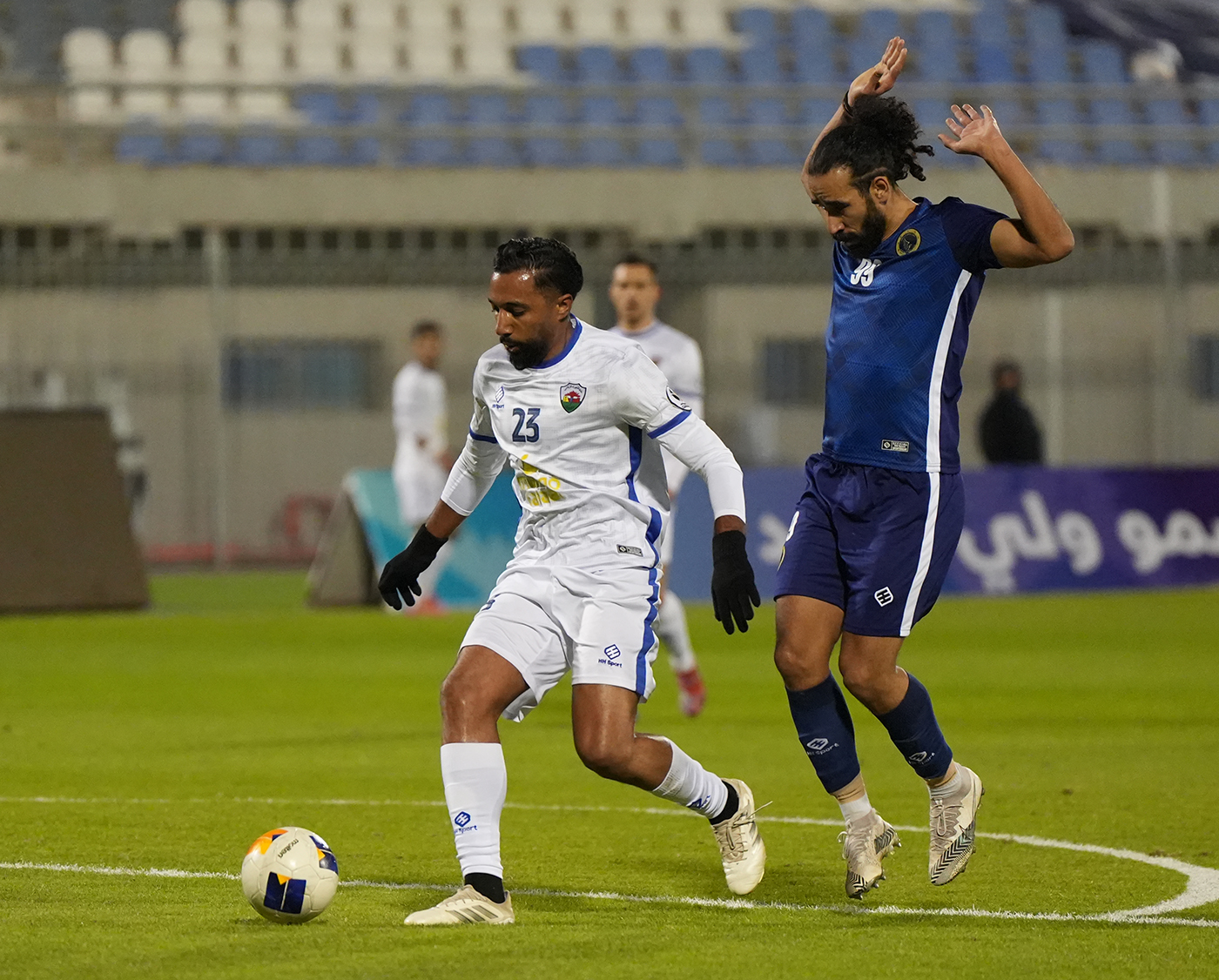 لاعب برقان يحاول استخلاص الكرة من لاعب الجهراء