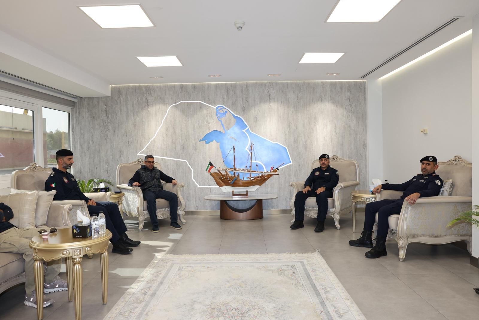 وقالت (الجمارك) في بيان صحفي اليوم السبت إن ذلك جاء خلال جولة تفقدية قام بها العمر إلى منفذي (النويصيب) و(أم المرادم) بالتعاون مع (خفر السواحل) وبتوجيهات وتعليمات النائب الأول لرئيس مجلس الوزراء ووزير الداخلية الشيخ فهد يوسف سعود الصباح وبناء على دعوة من مدير عام الإدارة العامة لخفر السواحل الشيخ العميد مبارك علي اليوسف الصباح في إطار تعزيز التعاون والتكامل الأمني بين الجهات المعنية والإطلاع على آلية العمل والتنسيق المشترك في المنافذ الحدودية.