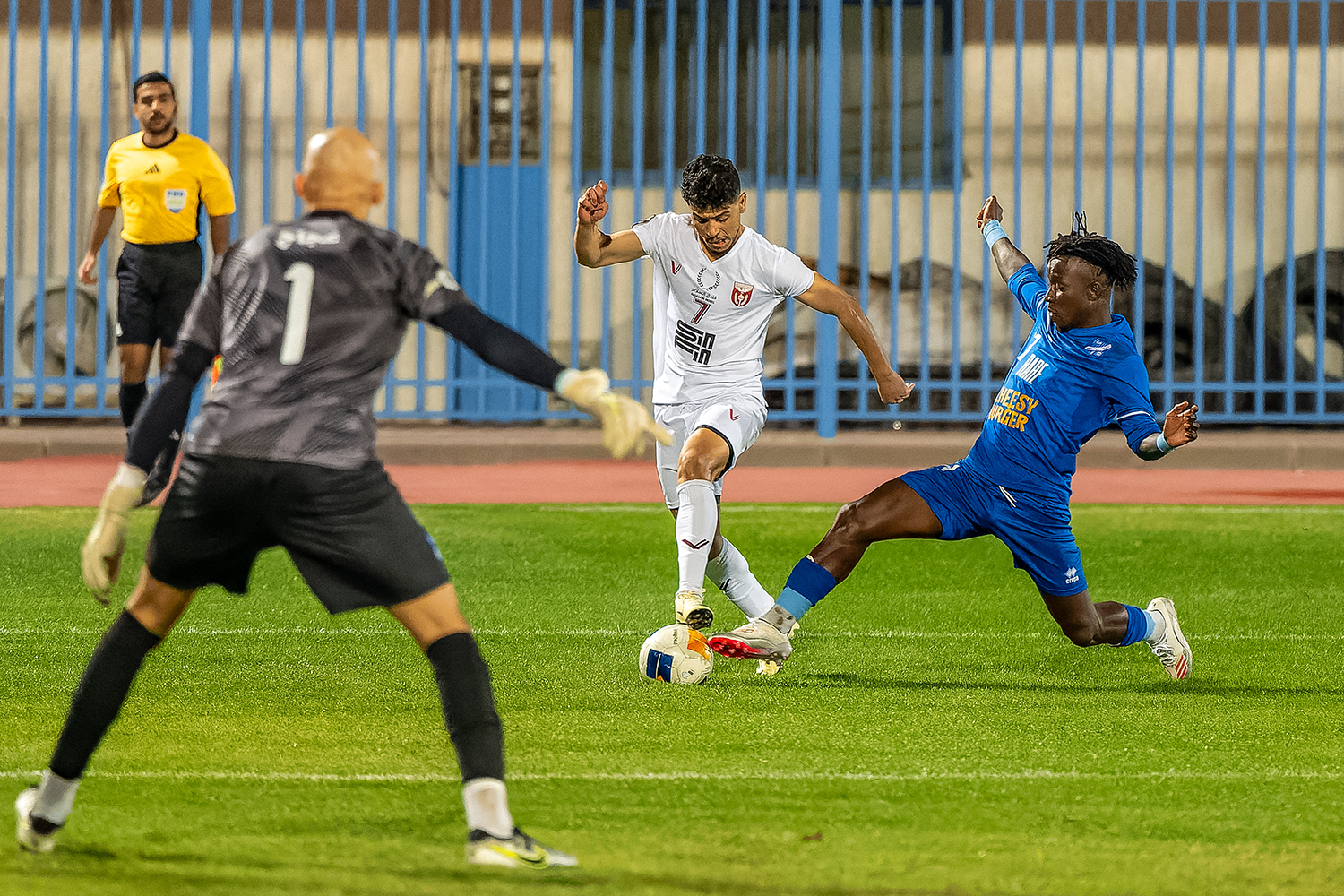 وسجل اللاعب حسام الحباسي الهدفين الأول والثاني لفريقه النصر بالدقيقتين ال14 وال47 فيما سجل اللاعبن فواز مبيلش الهدفين الثالث والرابع بالدقيقتين ال78 و ال82 ليعبروا بفريقهم الى الدور نصف النهائي.