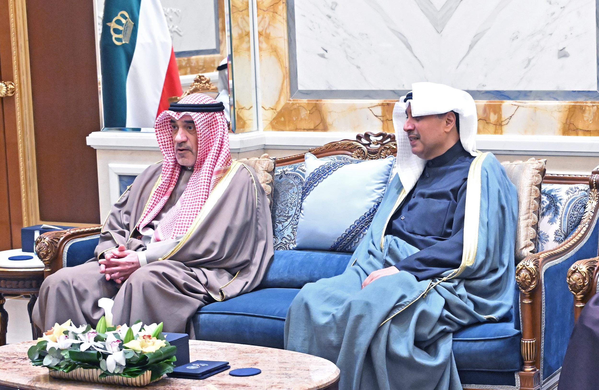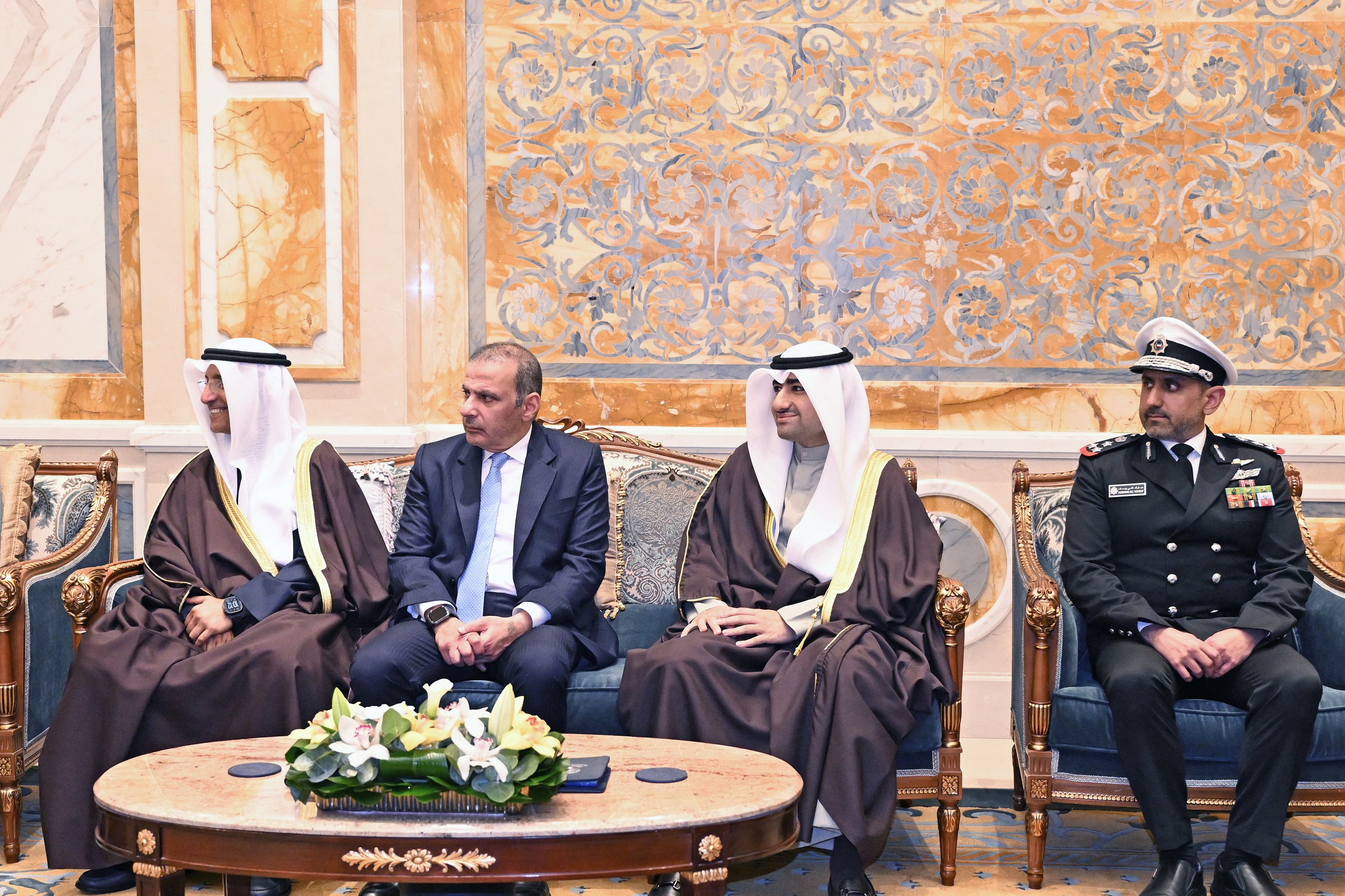 حضر اللقاء معالي وزير شؤون الديوان الأميري الشيخ حمد جابر العلي الصباح وسعادة مدير مكتب حضرة صاحب السمو أمير البلاد الفريق متقاعد جمال محمد الذياب وسعادة وكيل الديوان الأميري الشيخ عبدالعزيز مشعل مبارك عبدالله الأحمد الصباح وسعادة وكيل الشؤون الخارجية بالديوان الأميري مازن عيسى العيسى وسعادة المدير العام للإدارة العامة لخفر السواحل العميد الركن بحري الشيخ مبارك علي اليوسف الصباح.(النهاية)